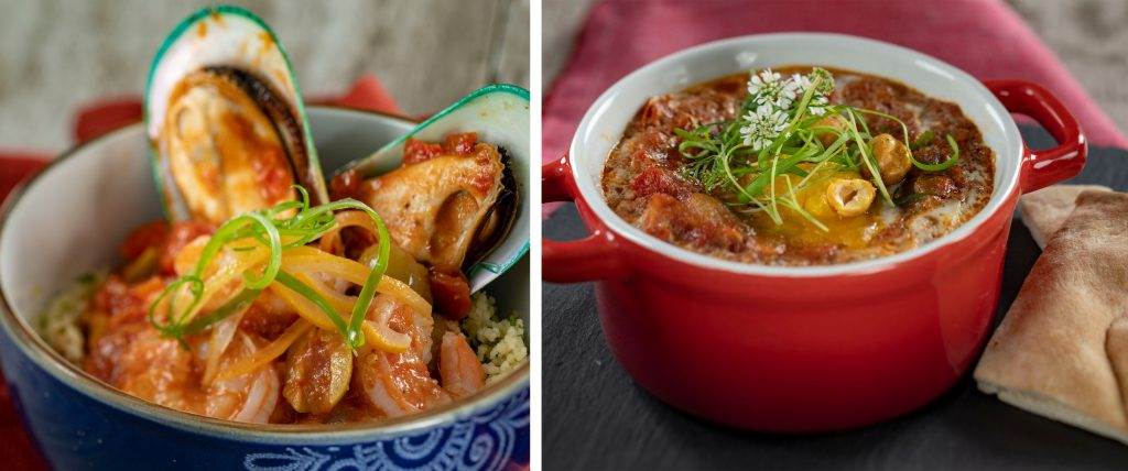 - Moroccan Seafood Couscous with Shrimp, Mussels, Olives, Preserved Lemons, and Anchovy Breadcrumbs (new).