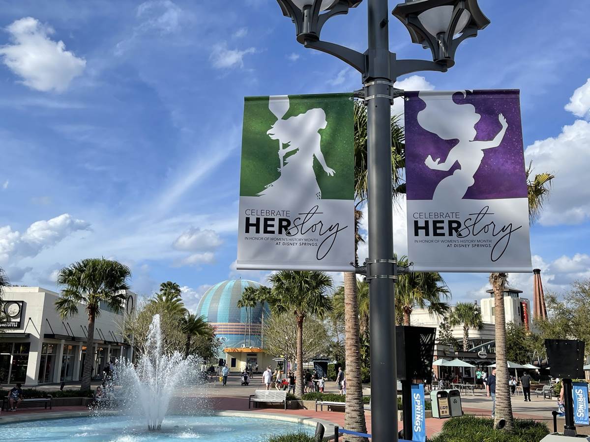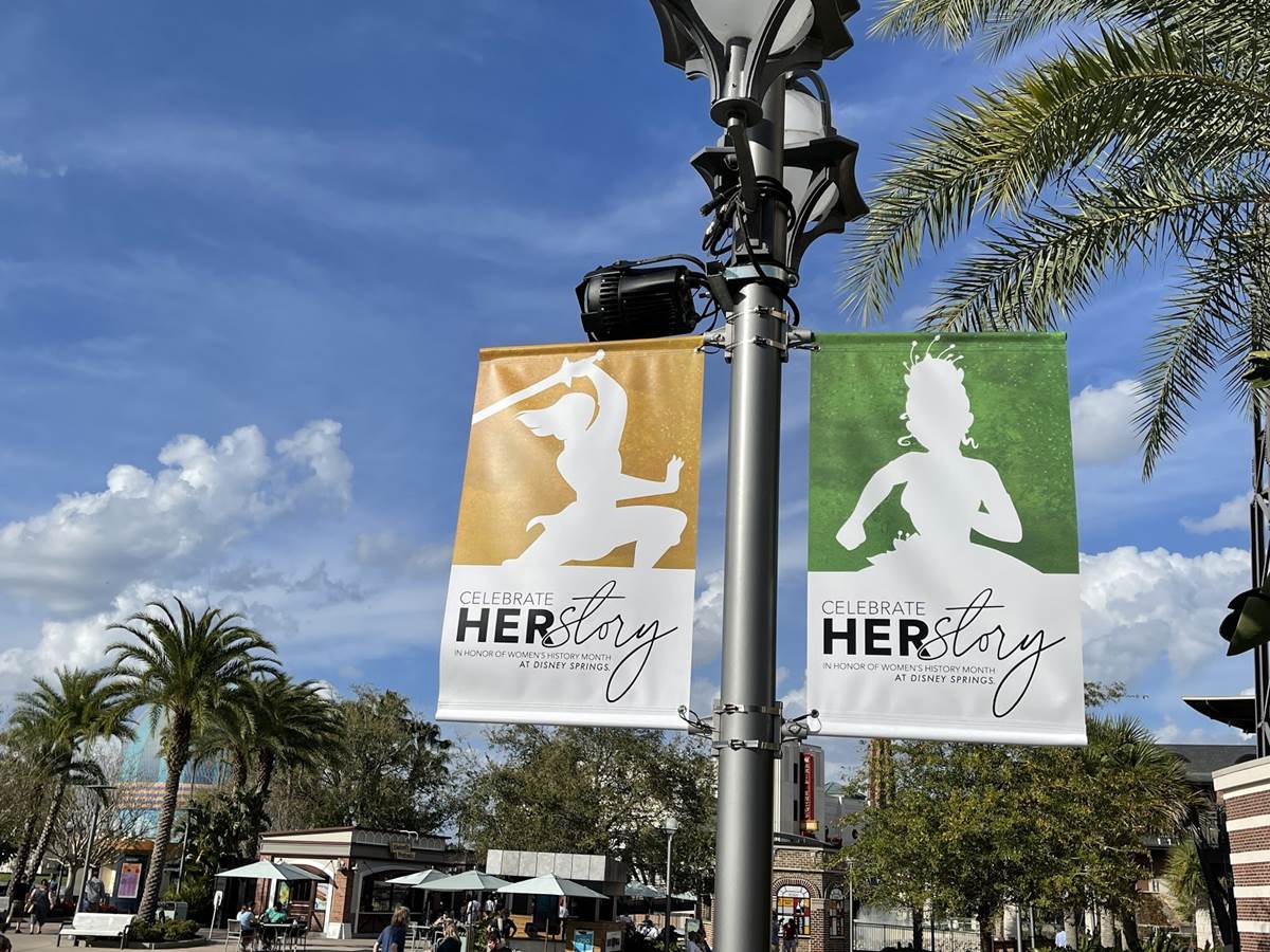 Disney Springs kicked off Women’s History Month today with the start of the “Celebrate HER Story” month-long event. From decorations throughout the Walt Disney World shopping, dining and play space to sweet treats only available during the event, today we bring you photos from the start of this celebration.