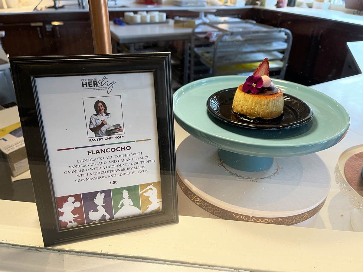 Two of Walt Disney World’s female chefs have also whipped up a few new desserts for the event. Chef Yoly’s Flancocho is a limited-time menu item at Amorette’s Patisserie inspired by her Puerto Rican heritage.