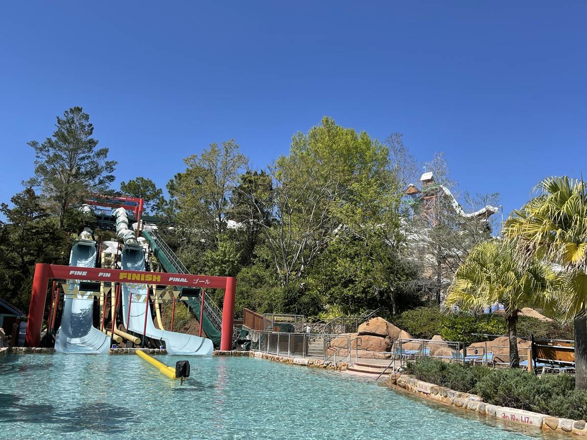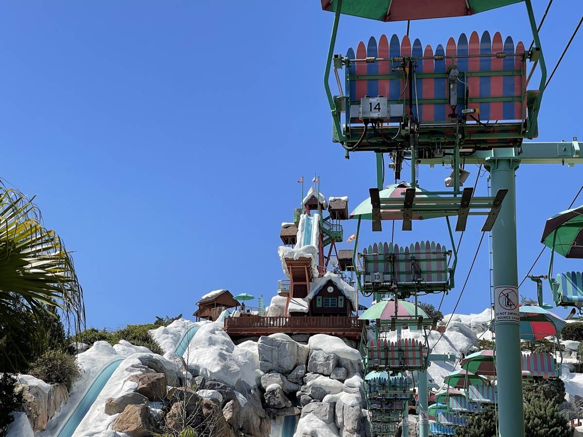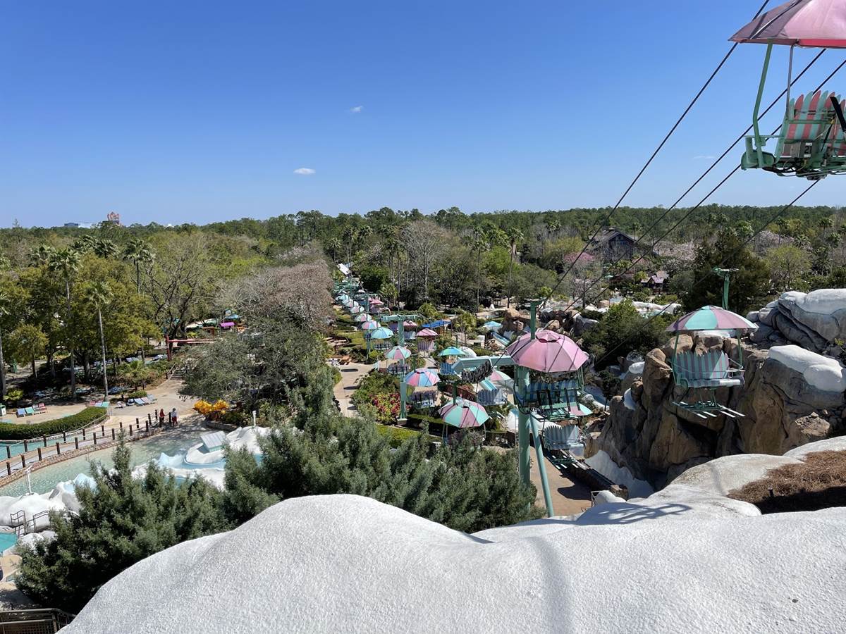 You’ll notice in the pictures that there are few people here. The weather today in Orlando, while quite pleasant, is a bit on the cool side. The temperatures range in the low 60s which for many sounds like a great day, but for those getting out of the water of a lazy river, wave pool, or splashing down after a slide, feels drastically different and uncomfortable making for a not-so-pleasant day. In fact, Universal’s Volcano Bay which also recently reopened, closed for the weekend based on the forecast. The marketing for the reopening of Blizzard Beach is also lackluster, especially when compared to other efforts of Walt Disney World, and even other area parks, so word might not be out yet that “the only ski resort on the meltdown” is open once again.