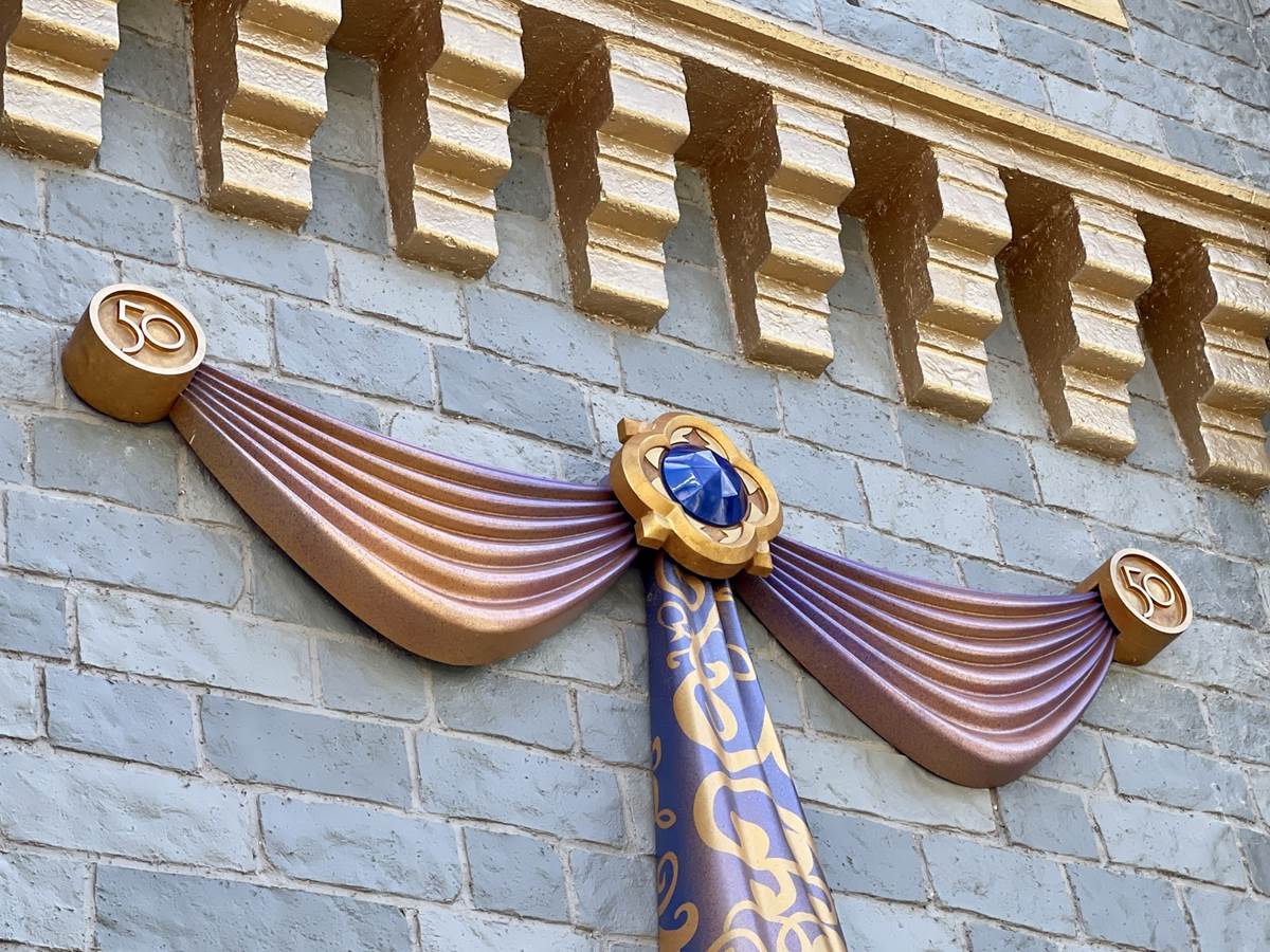Yesterday, Walt Disney Imagineering shared a behind-the-scenes look at the Cinderella Castle décor coming to celebrate the 50th anniversary of the Walt Disney World Resort. And some of that décor has made its way onto the Castle today. Check it out in the photos below.