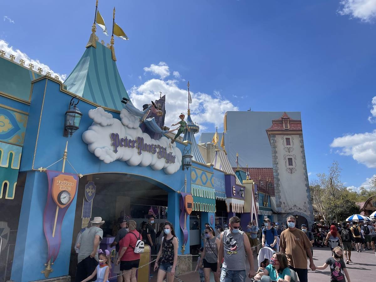 Your next flight to Never Land could be more magical as Walt Disney World is refurbishing the facade of Peter Pan’s Flight heading into the busy spring break season. Photo scrimmed construction walls have been erected around the attraction’s northwest facade, which face the Tangled-themed rest area.