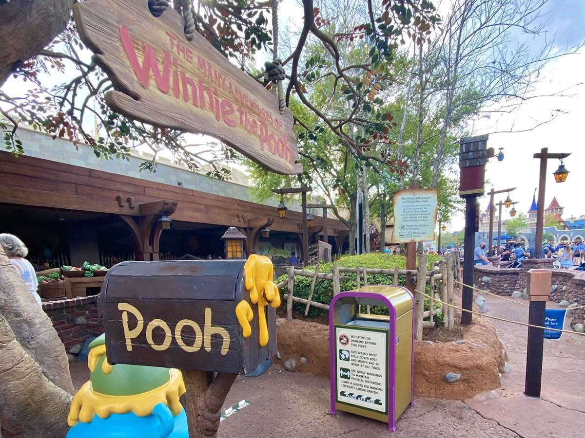 - This new sign, which we spotted at the front of the queue for The Many Adventures of Winnie The Pooh, shows rules that have been in place for some time, including: