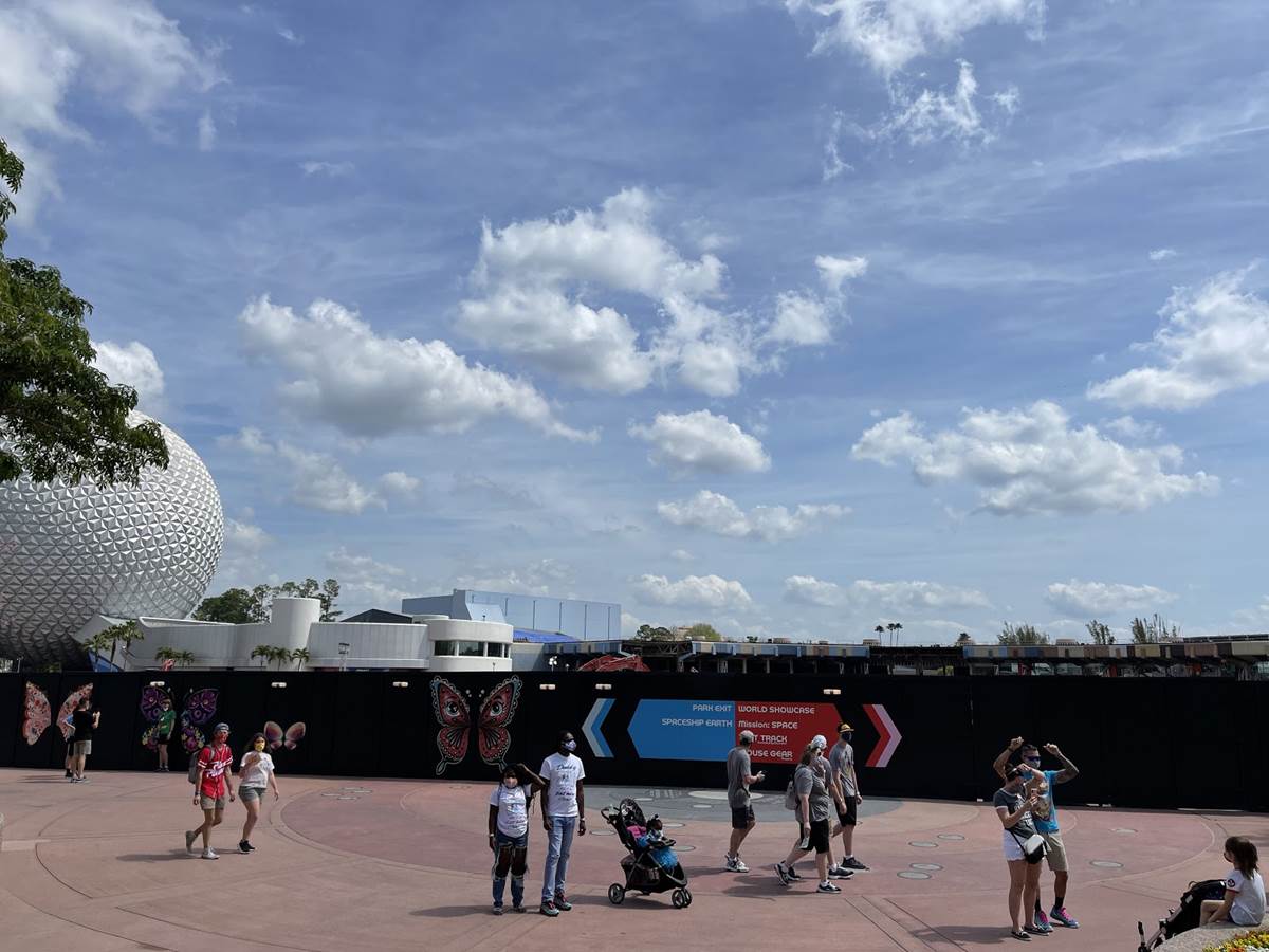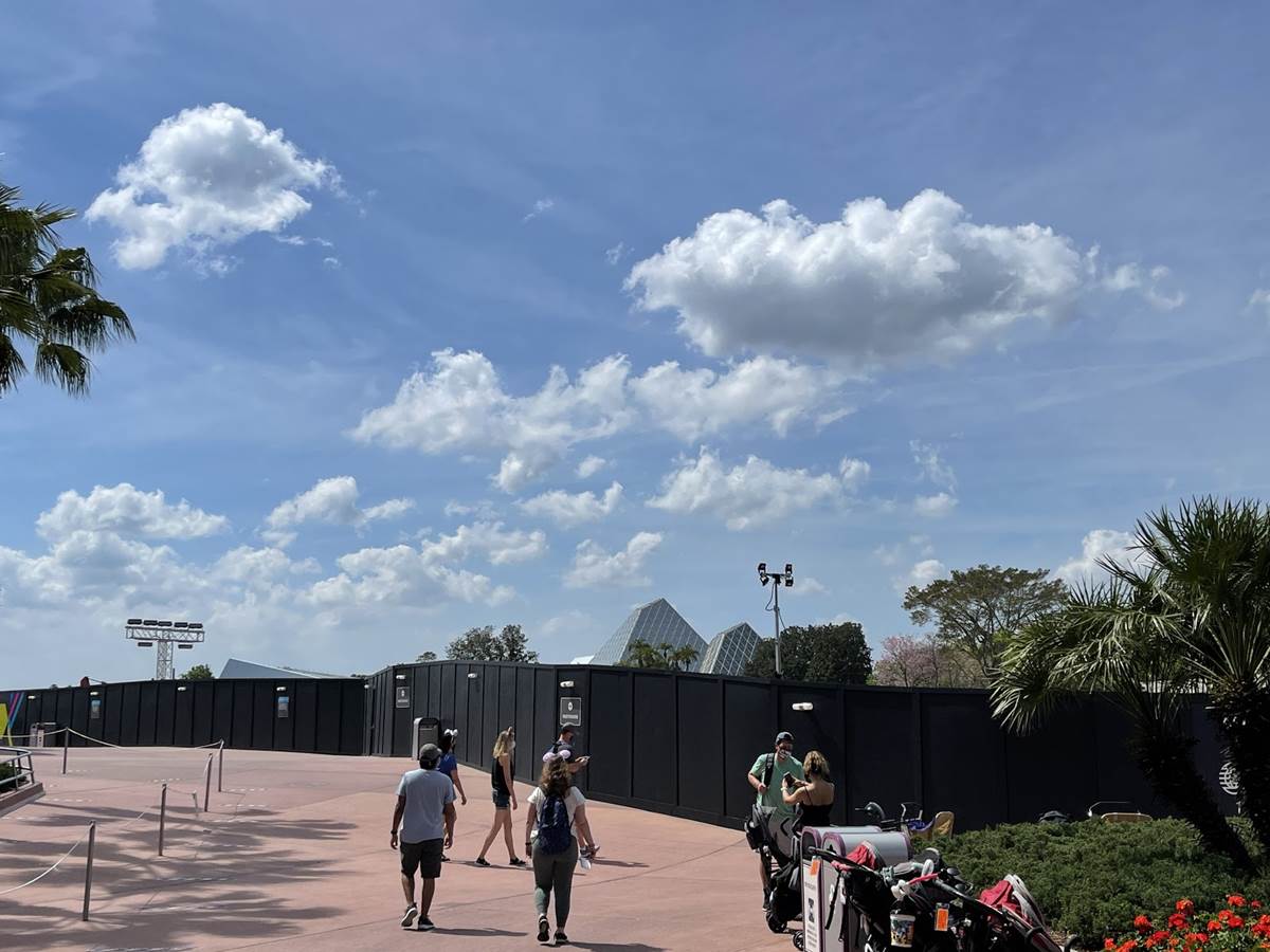 As we continue to move through the park, you can see that where you would normally see at least the frame of the building for Innoventions, is now clear skies.