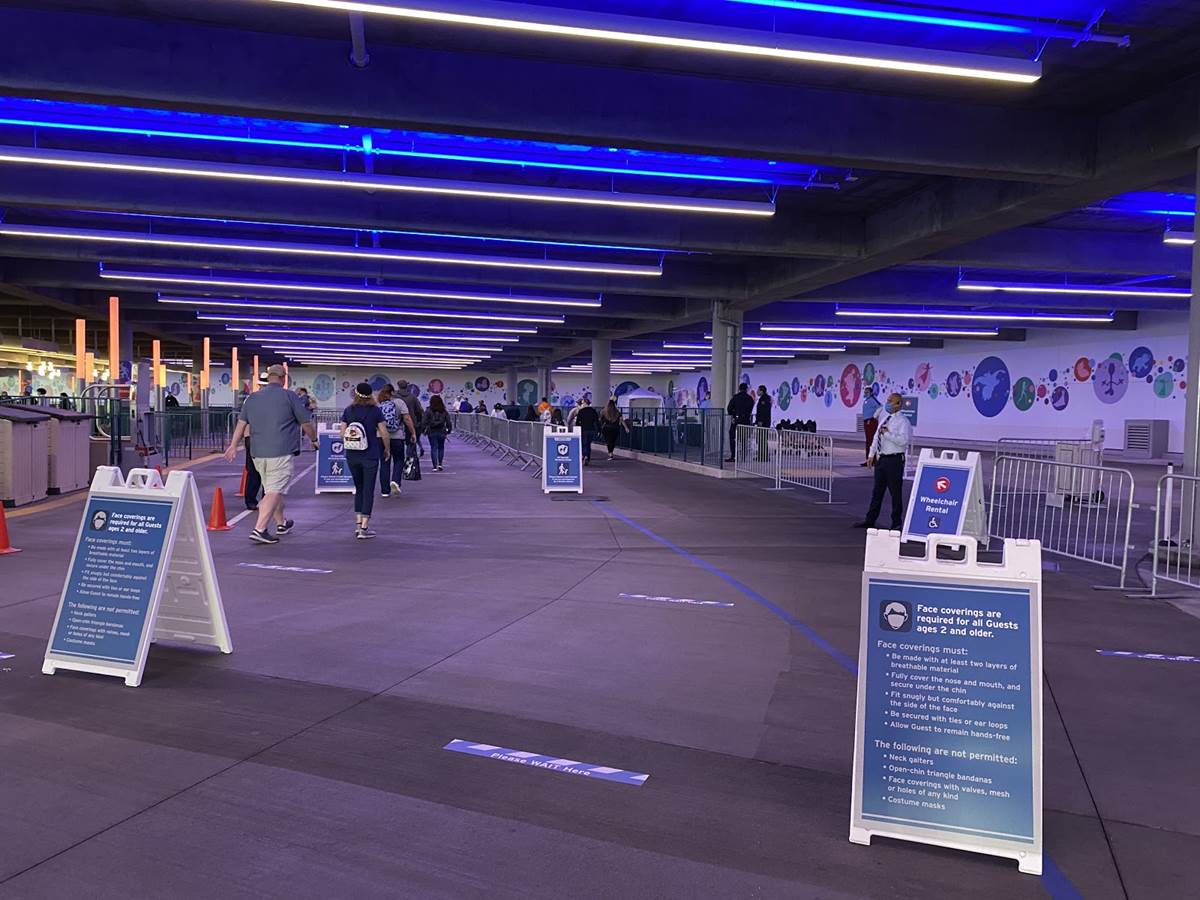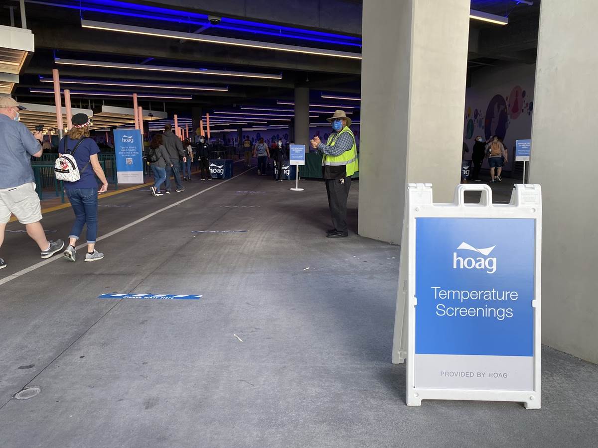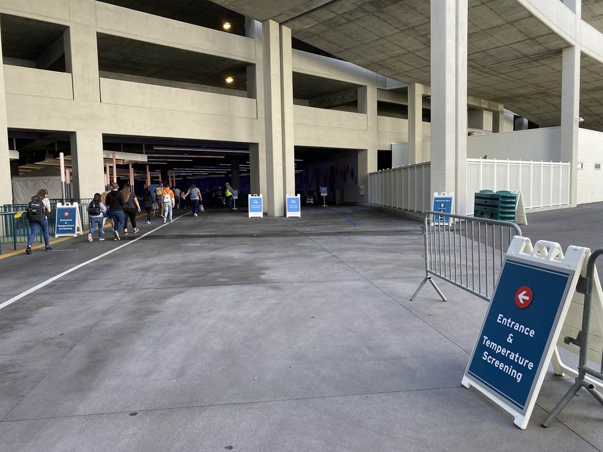 Coming out of the Mickey and Friends parking structure, we go through a required temperature check.