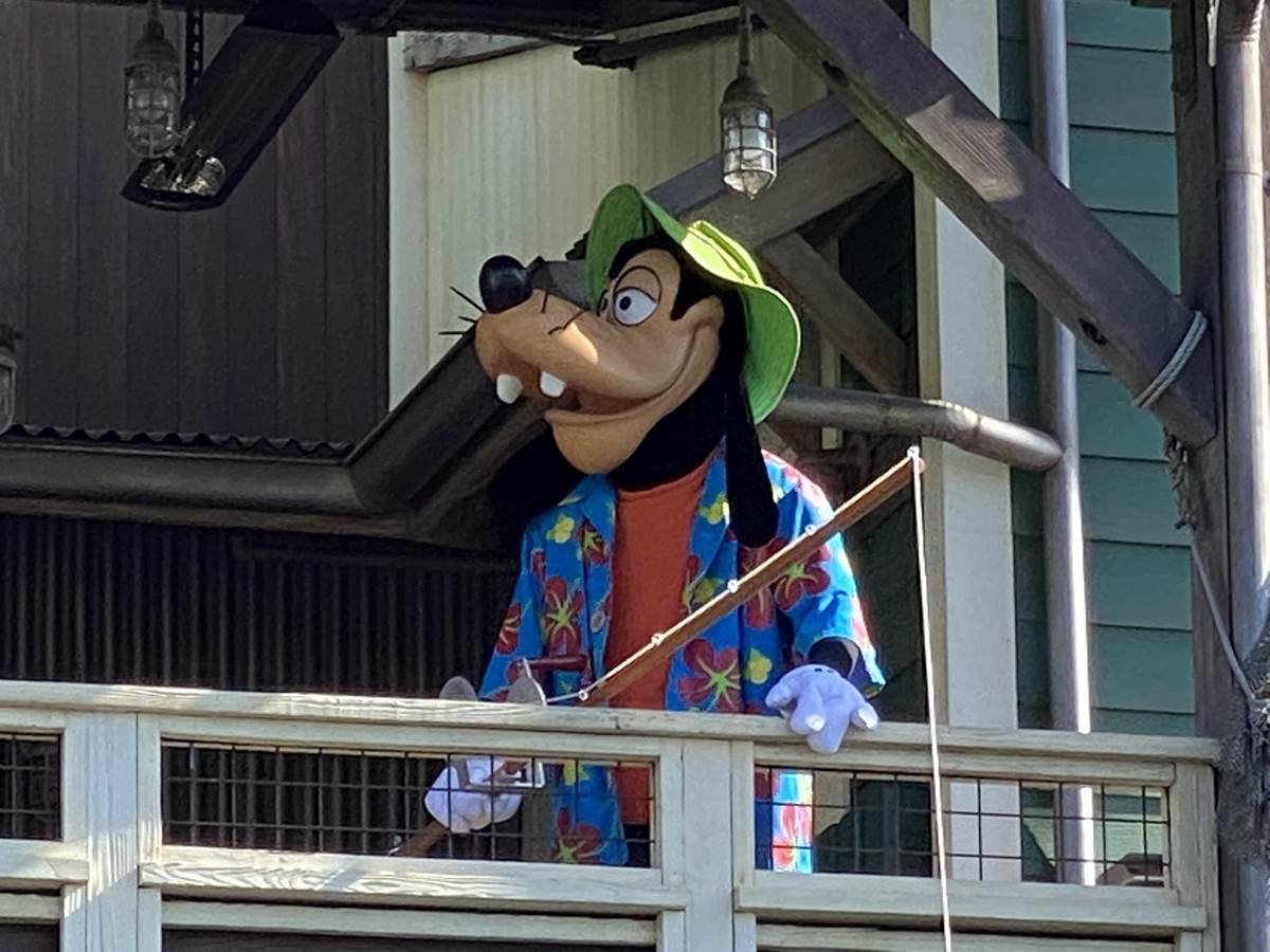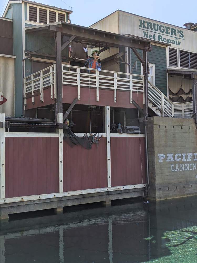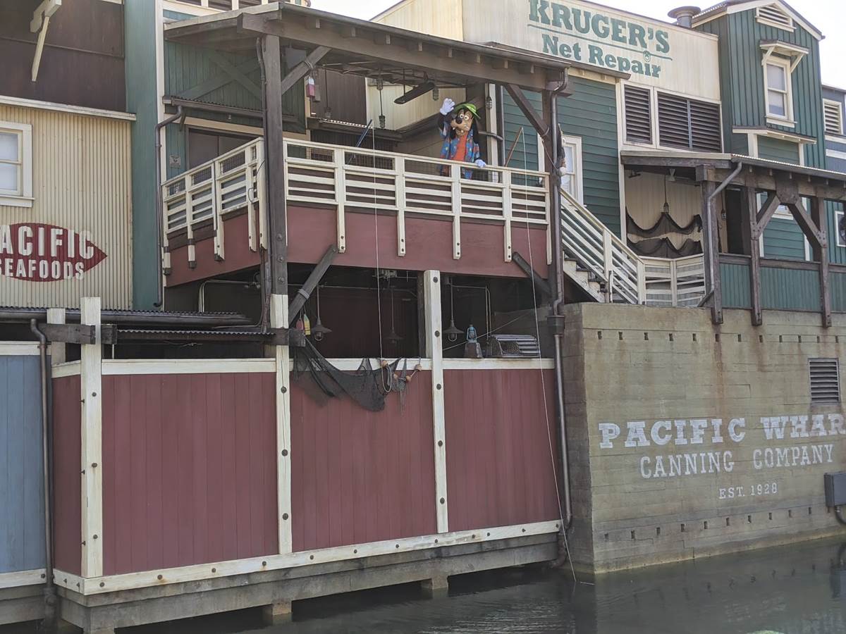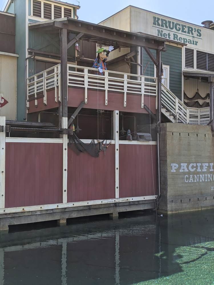 Over in the Pacific Wharf, we spotted Goofy doing a little fishing, and little later on we spotted his son Max with him, though unfortunately they didn’t do The Perfect Cast together while fishing.