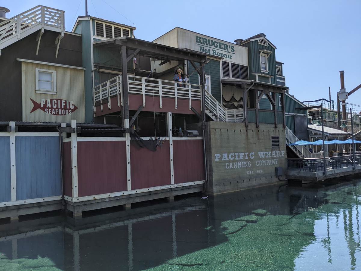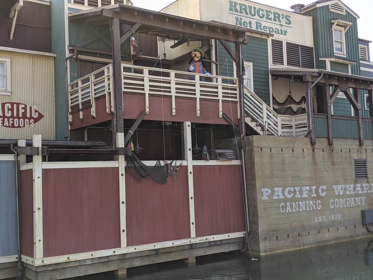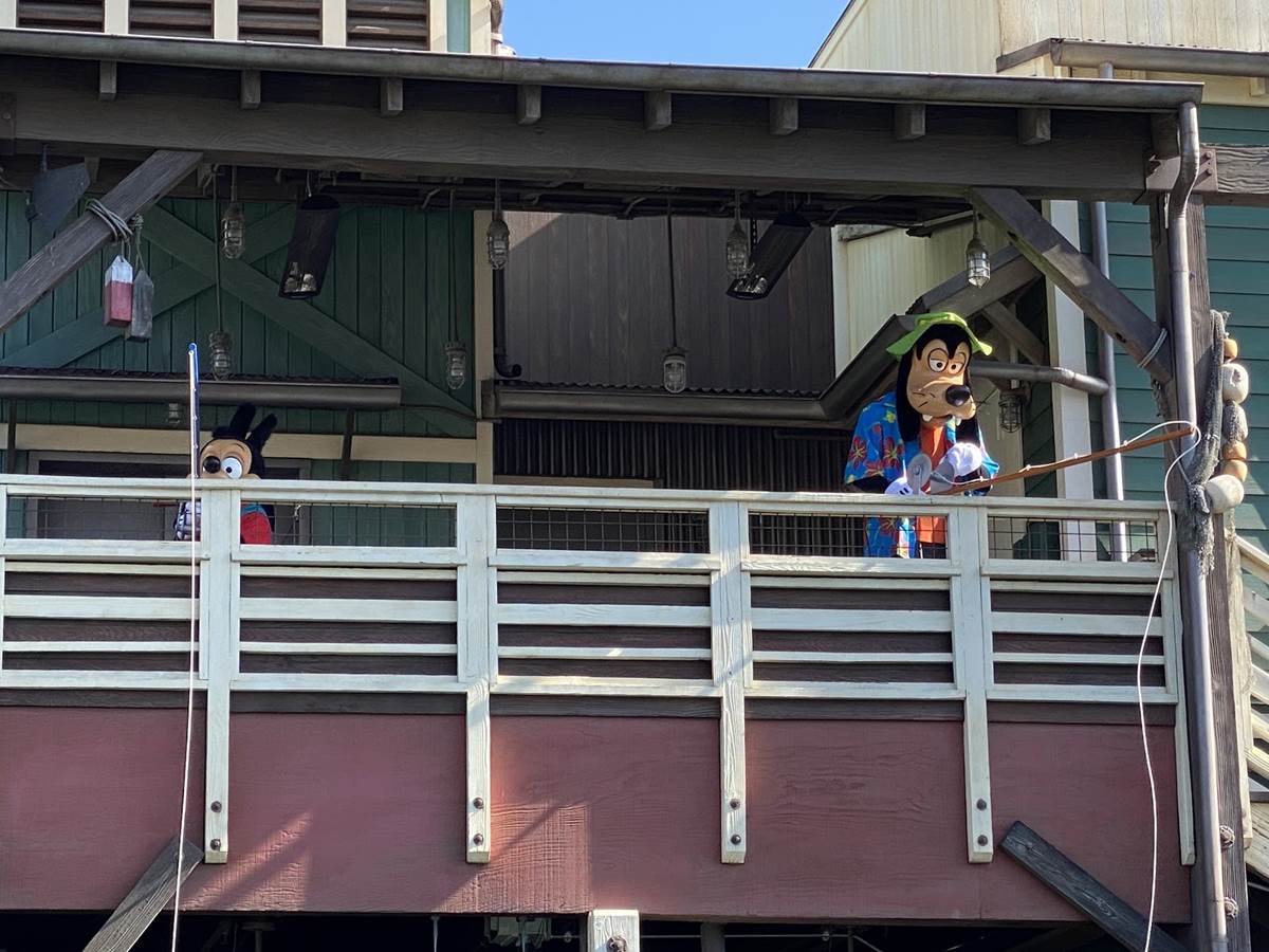 Over in the Pacific Wharf, we spotted Goofy doing a little fishing, and little later on we spotted his son Max with him, though unfortunately they didn’t do The Perfect Cast together while fishing.