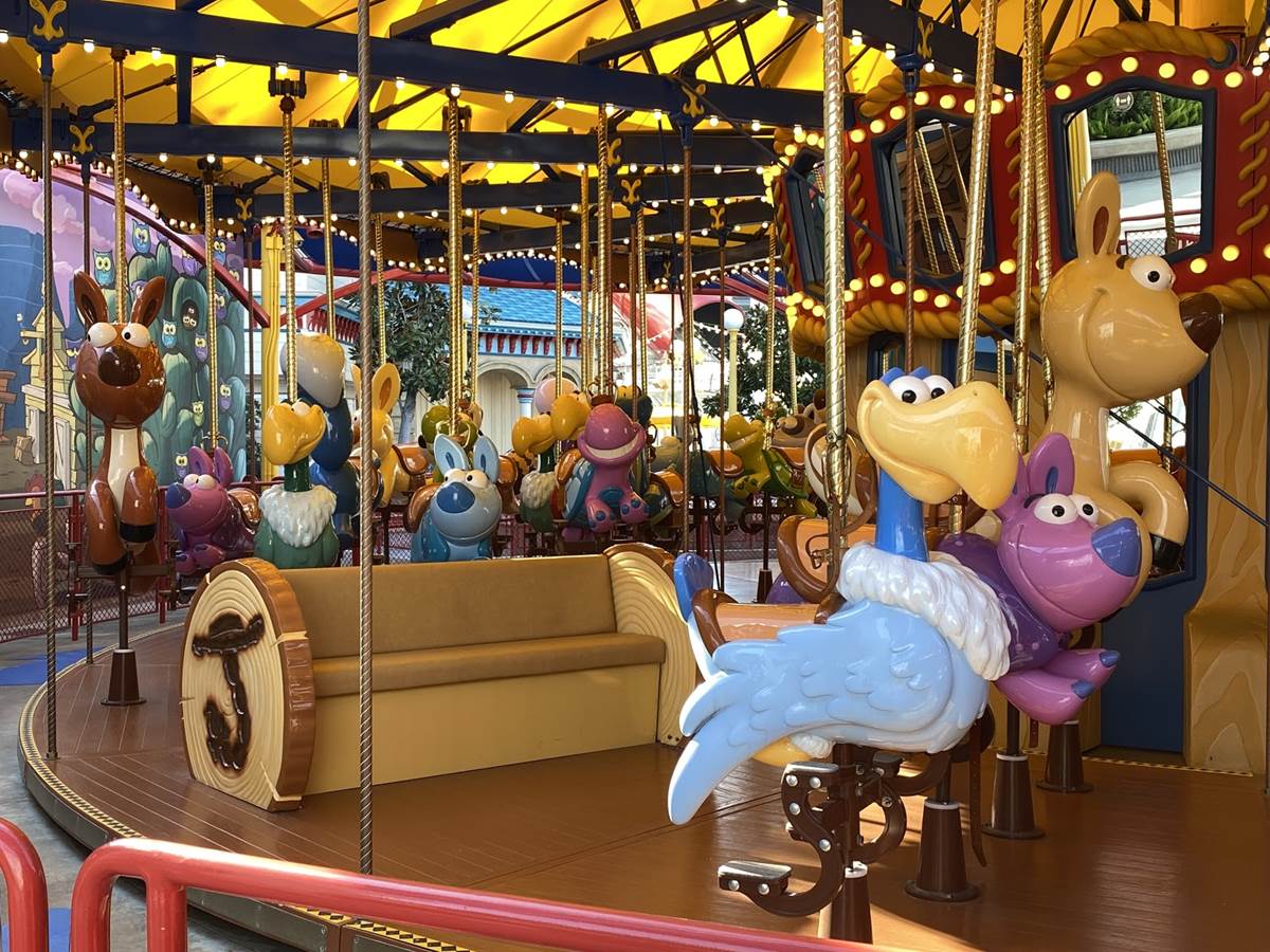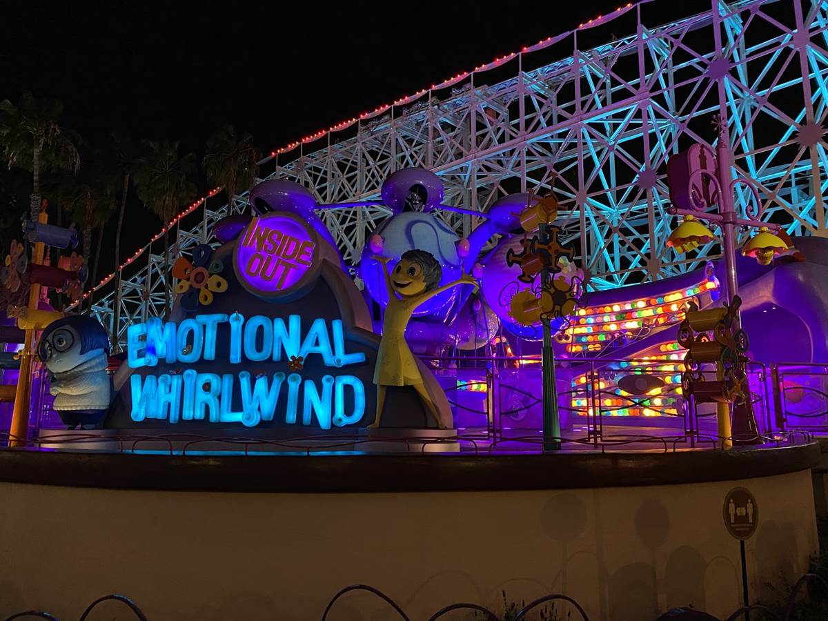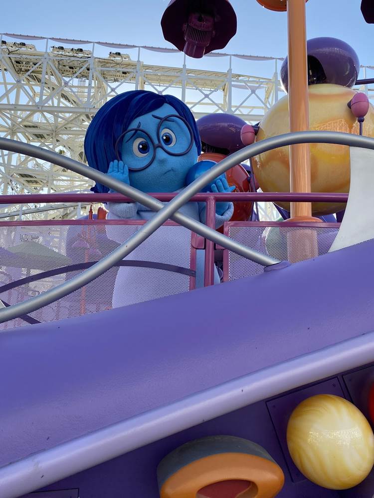 Characters are also popping up all around the park. We were able to spot Joy playing with a core memory (we know it’s a core memory, we asked!) at the Inside Out Emotional Whirlwind.