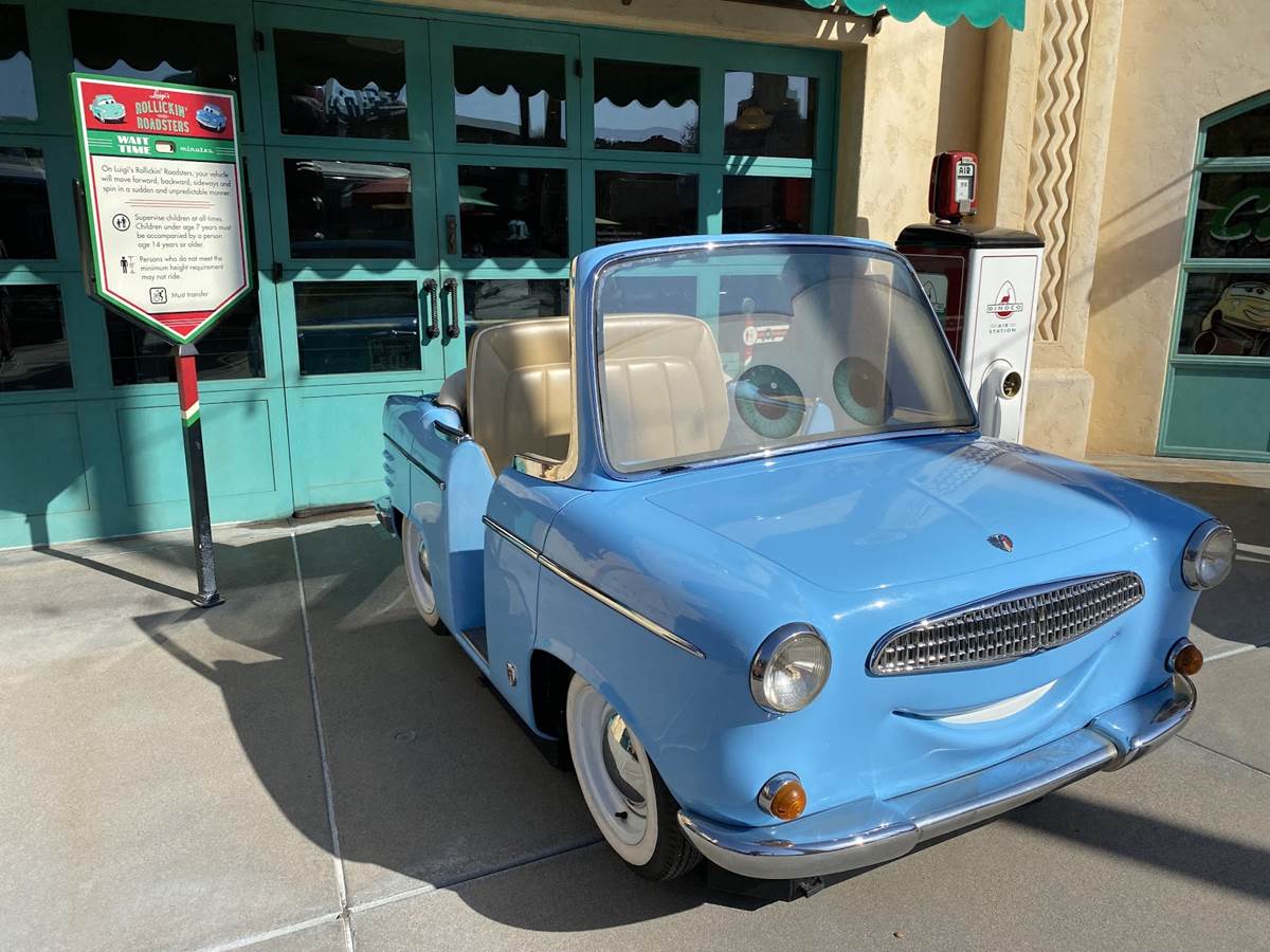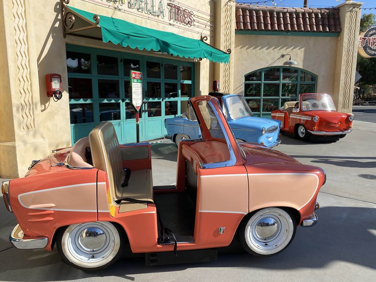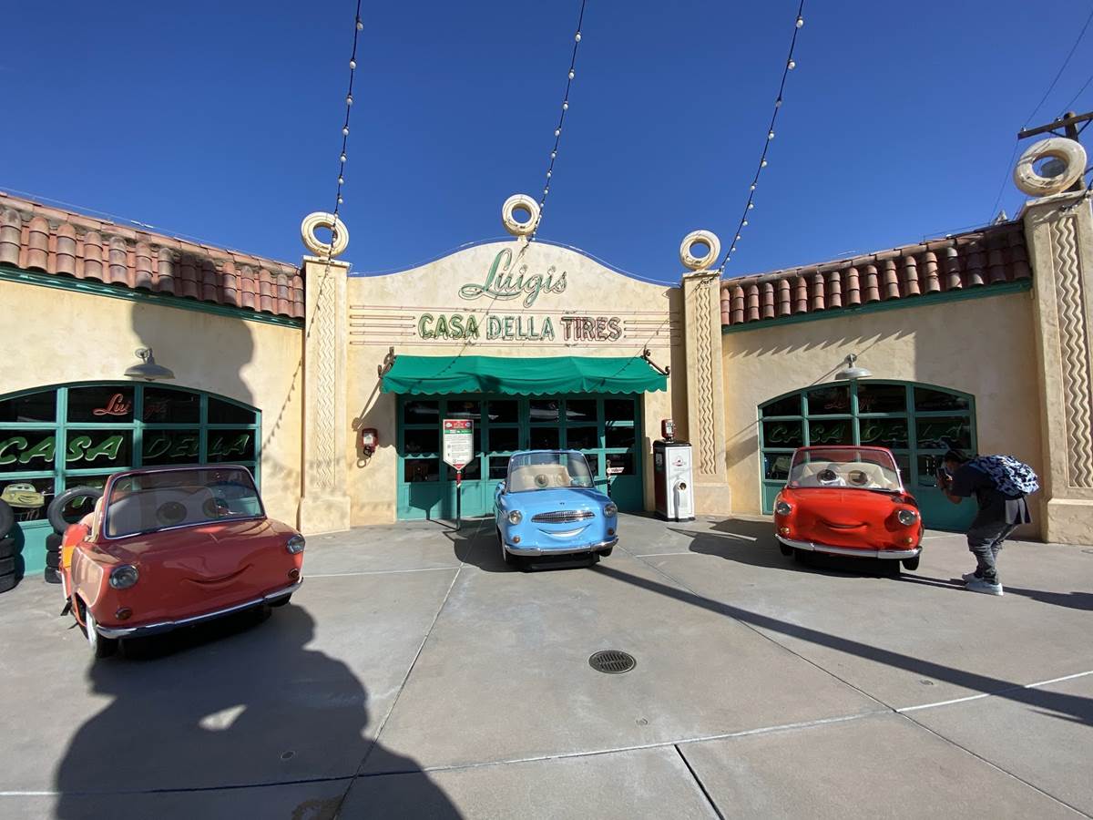 Similar to the Autopia photo spot on the way in, just outside of Luigi’s Rollickin’ Roadsters you’ll find a few of Luigi’s cousins parked out front near the tire tower.