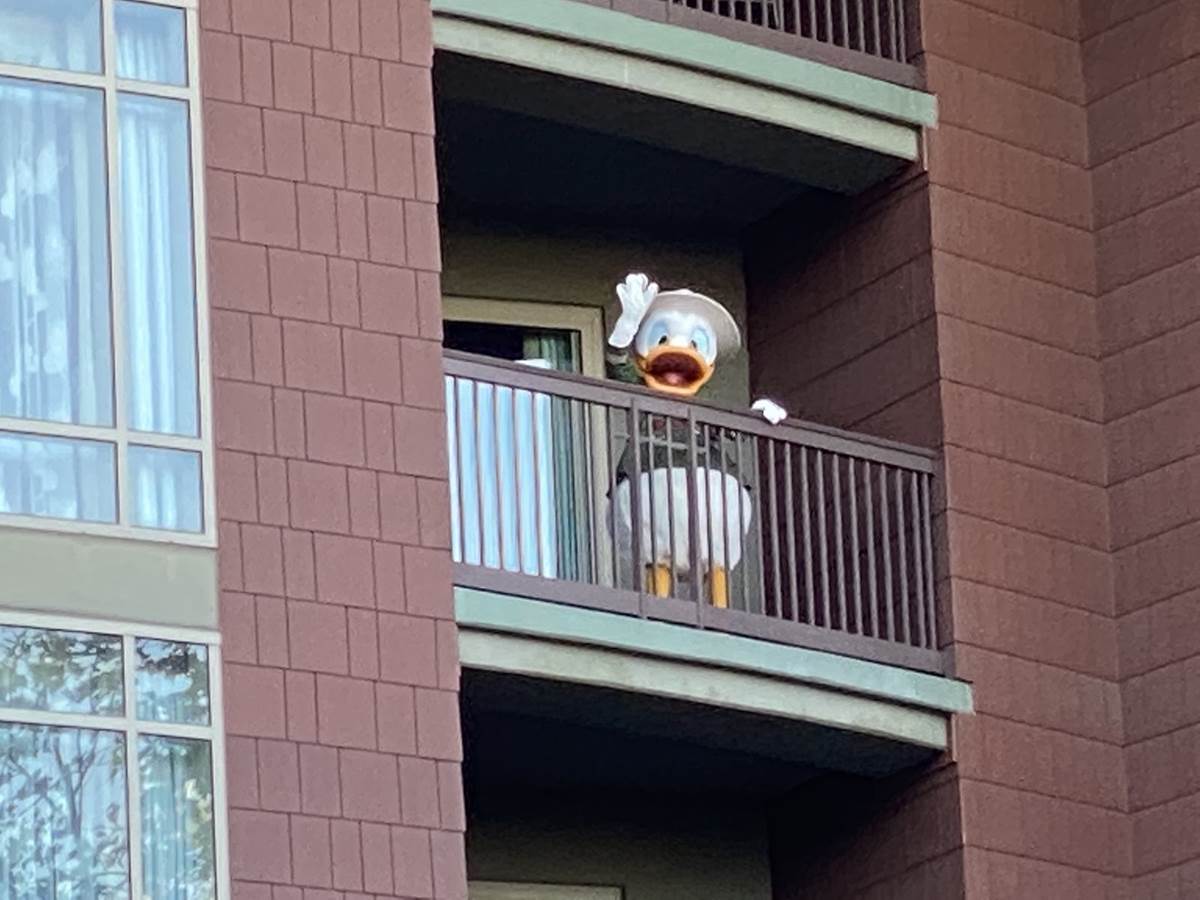 Donald Duck was spotted way up high on a patio at Disney’s Grand Californian Hotel and Spa!