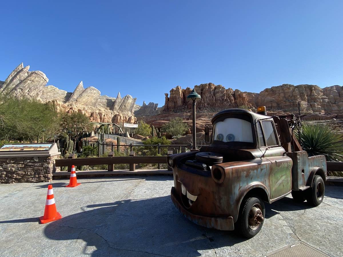 Near Radiator Springs Racers, Lightning McQueen and Mater can be found.