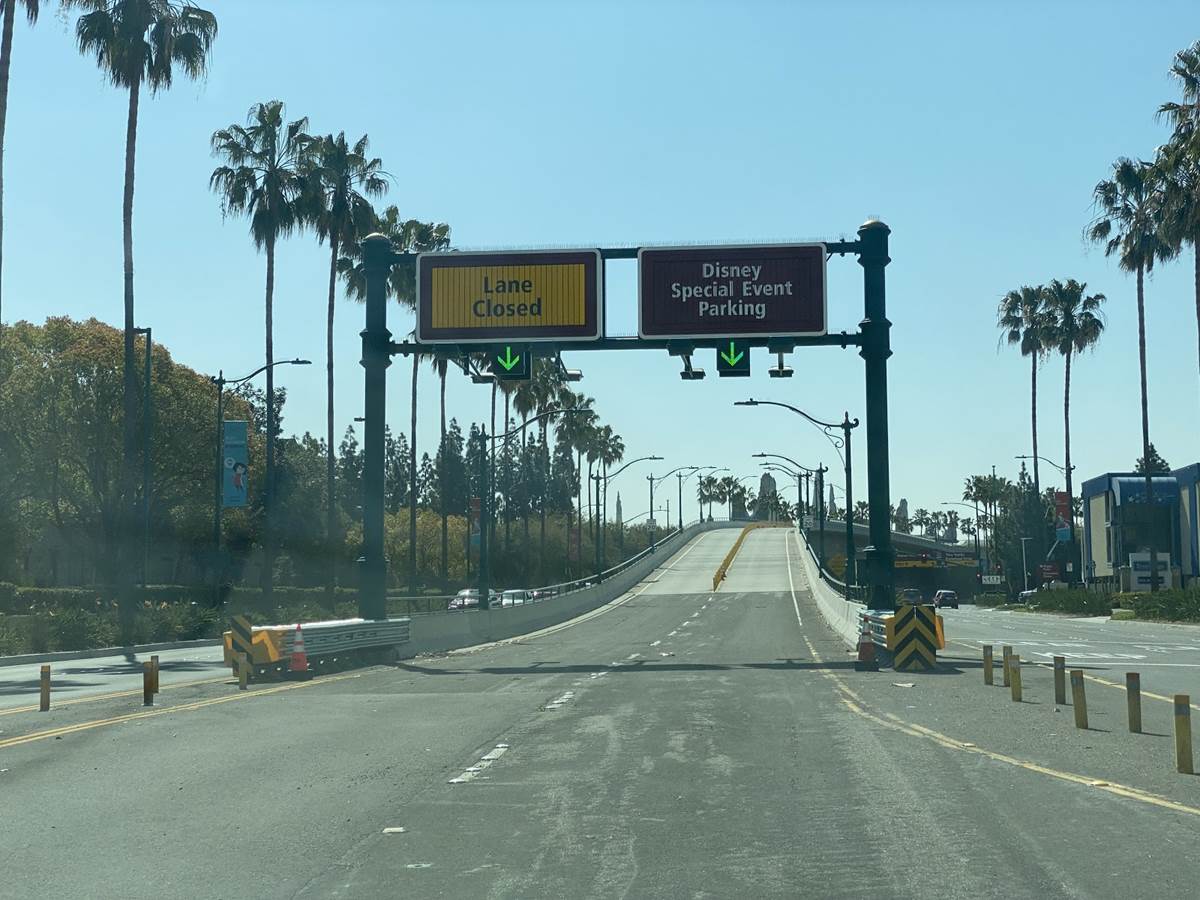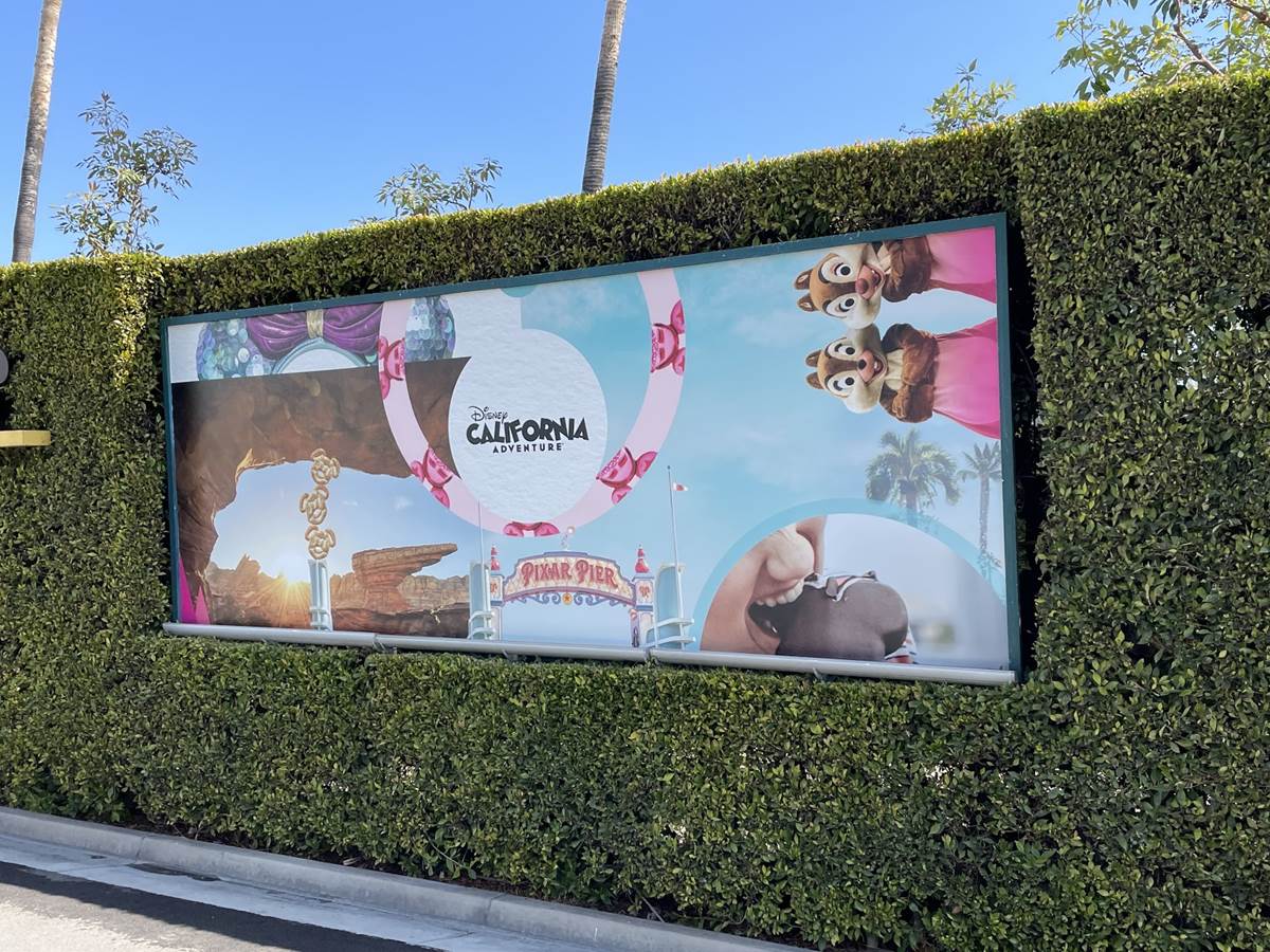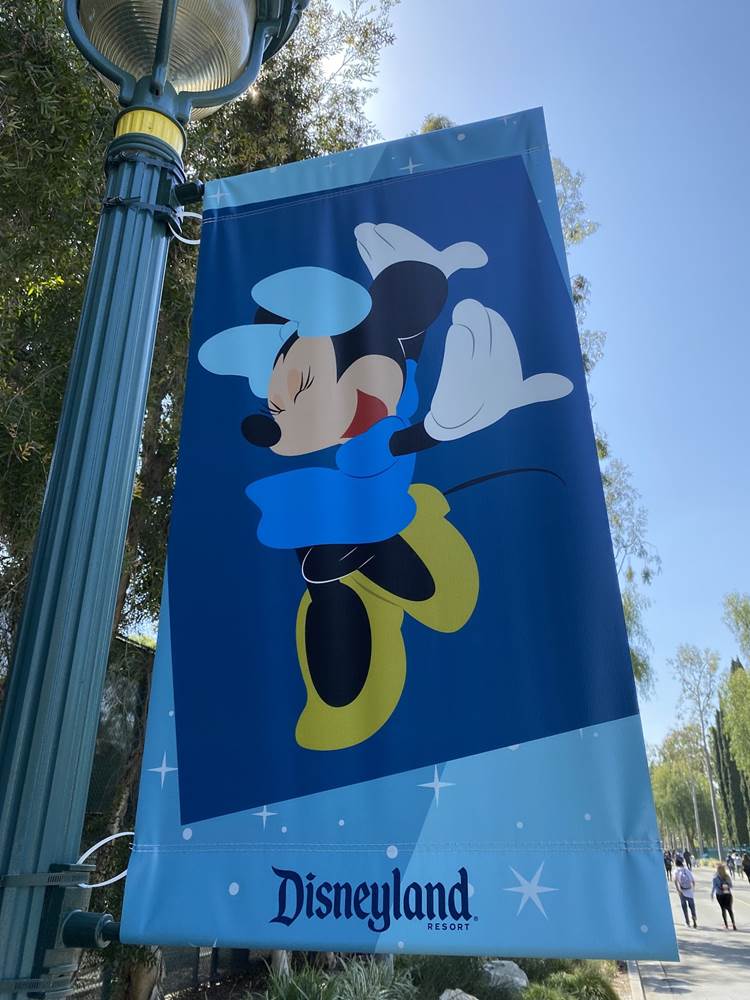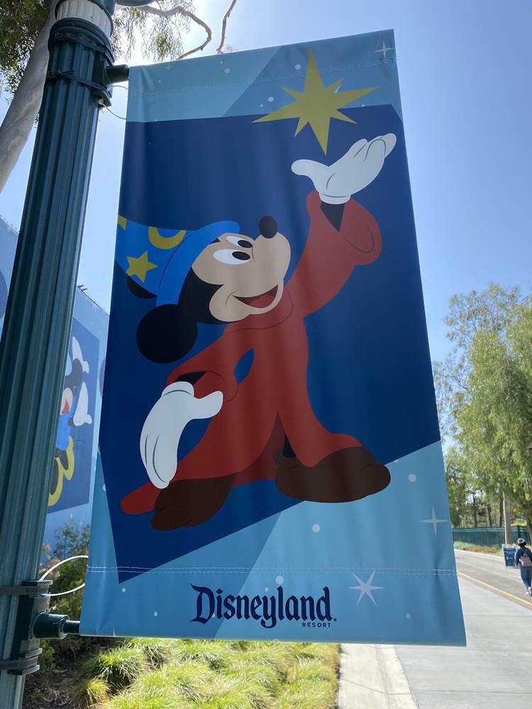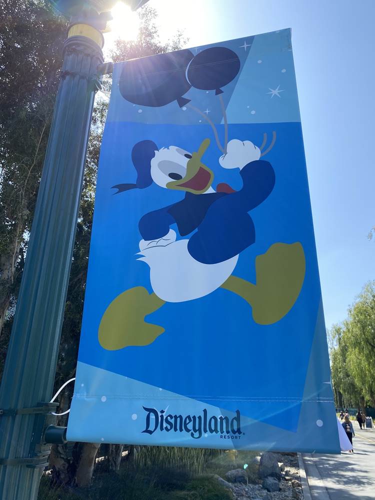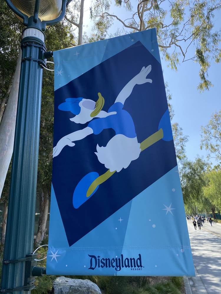 After the temperature check the long walk begins. Parking trams aren’t running during this event, so the lane has become a dedicated walkway into the resort. It’s a good thing the temperatures are taken at the garage, otherwise the walk in the Southern California heat could lead to an abundance of guests not being able to get in, at least without a rest and recheck. Along the walk are numerous billboards advertising and welcoming those to the Touch of Disney event, and as you get closer to the resort proper, designs featuring favorite characters and stylized park icons. There are also little road signs promising a churro stand in the distance.