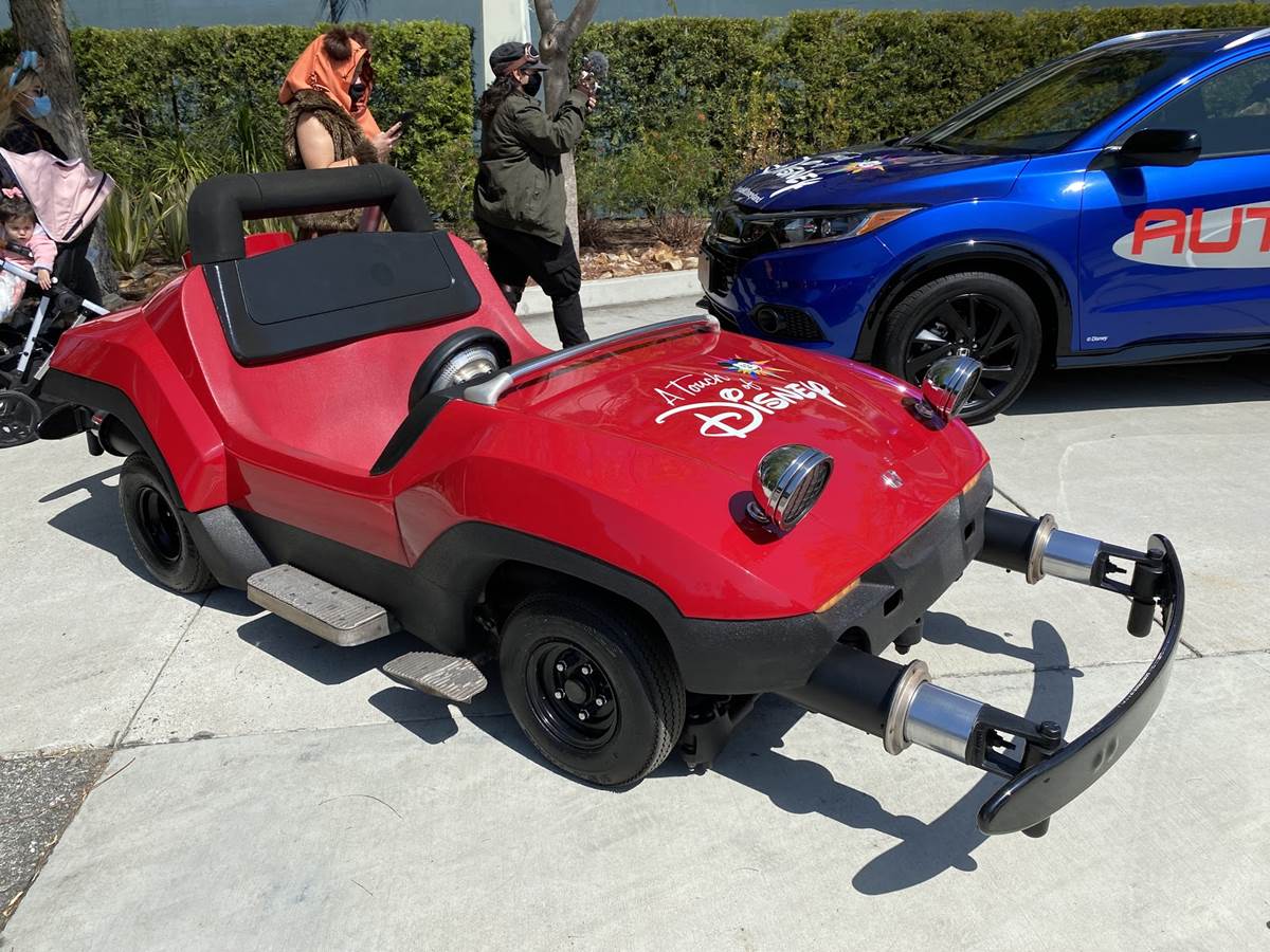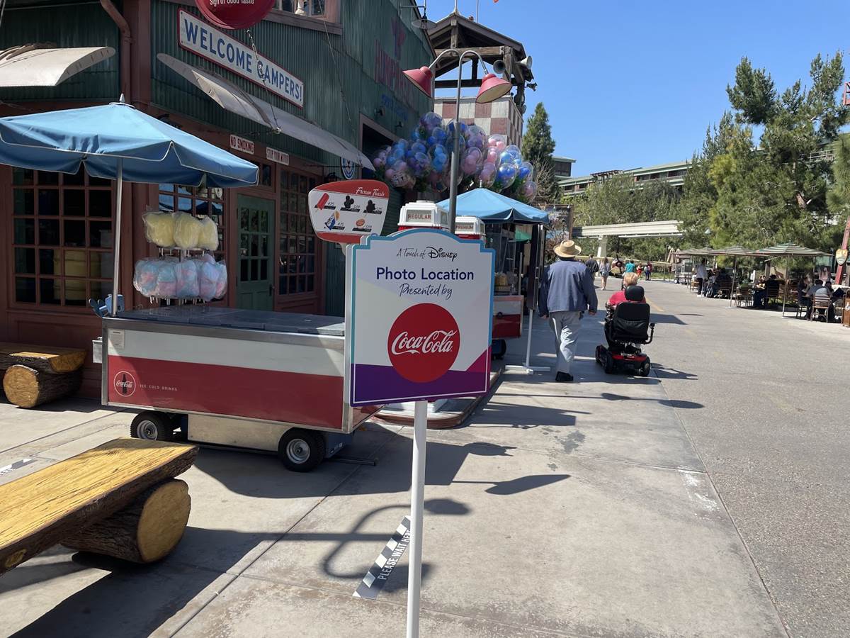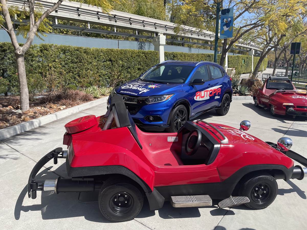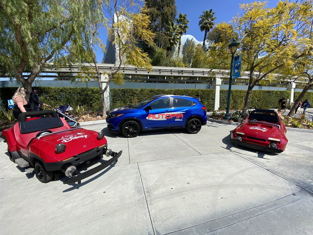 Or, you might even encounter ride vehicles stationed on the pathway itself, like this photo op featuring Autopia cars, presented by Honda. Guests can climb in and take photos with the vehicles, and cast is nearby to clean accordingly.