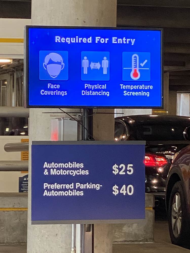 One new thing we noticed was the addition of sensors in the garage that indicate how many spaces are available on the level/in the row. We’ve also noticed the trash cans, also similar to lessons learned in Florida have been propped open to lessen the amount of touching on the surface.