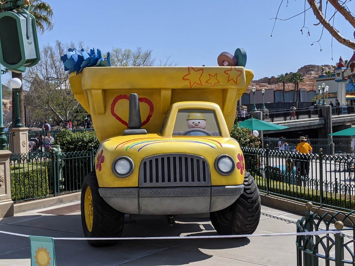 More spots are set up around the park, including one featuring a parade float from the Pixar Play parade.