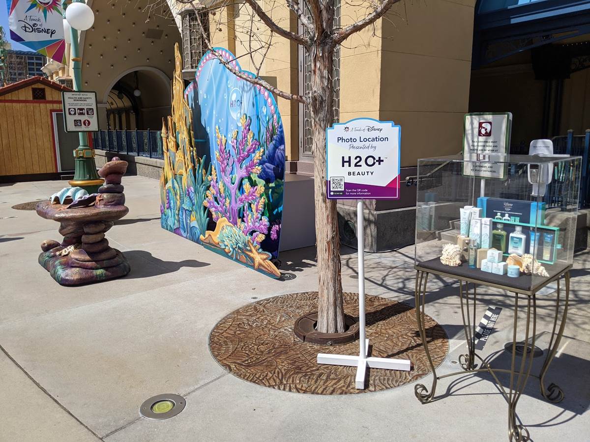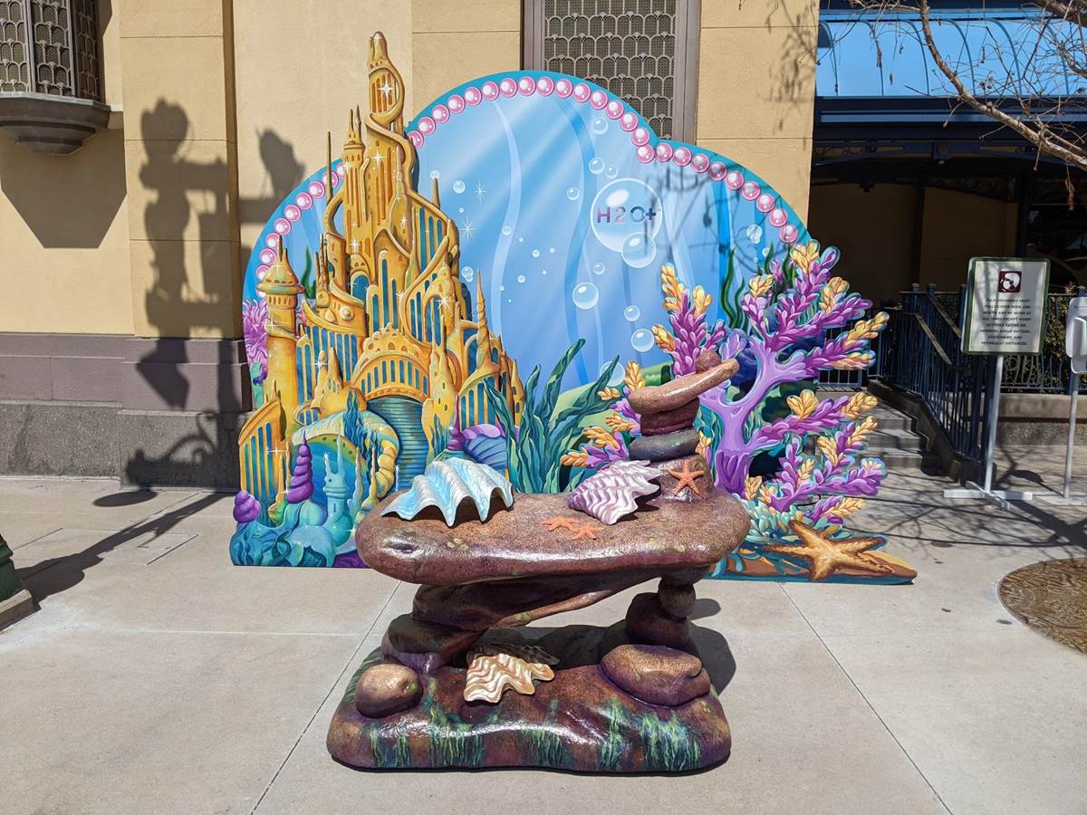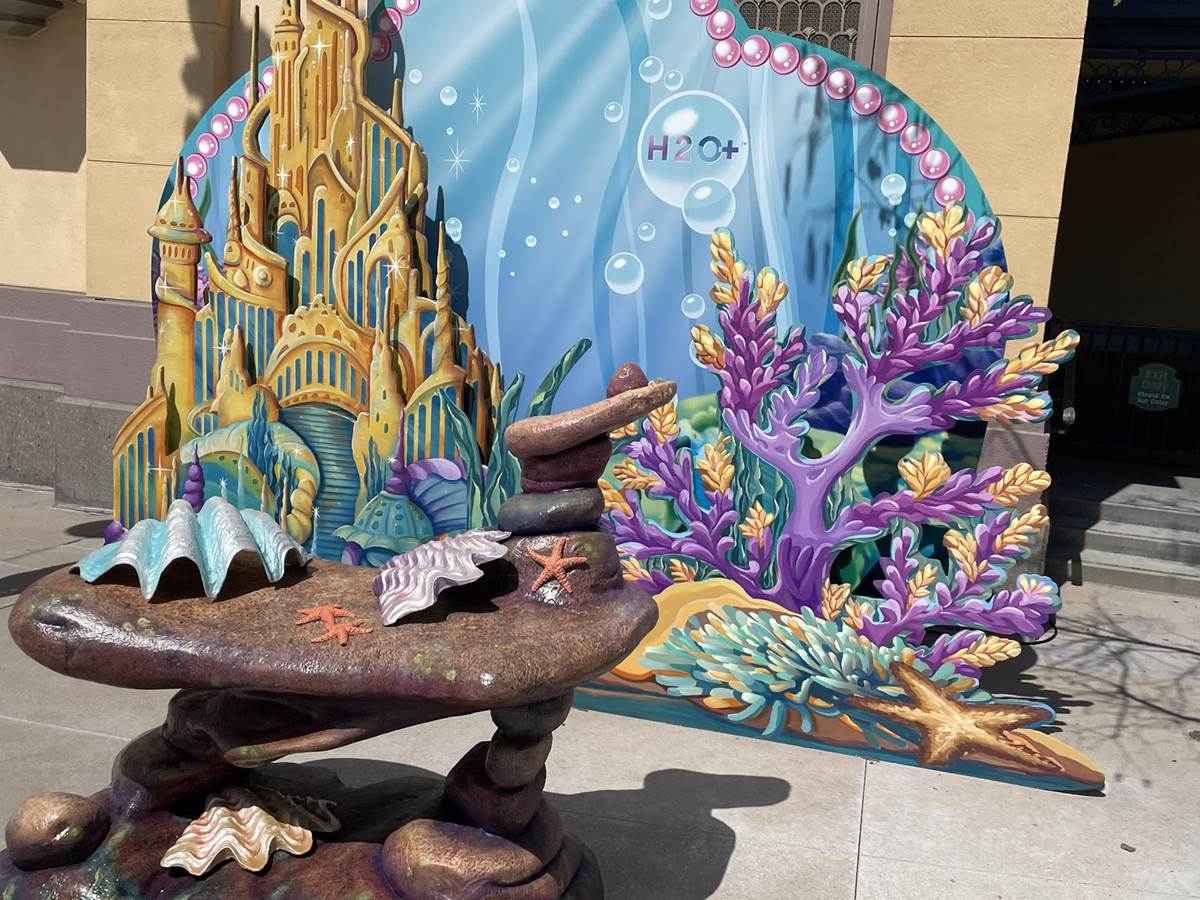 Throughout the park, various photo ops have been set up, including one featuring Ariel’s grotto area presented by H20+, since Ariel is featured on some of their products.