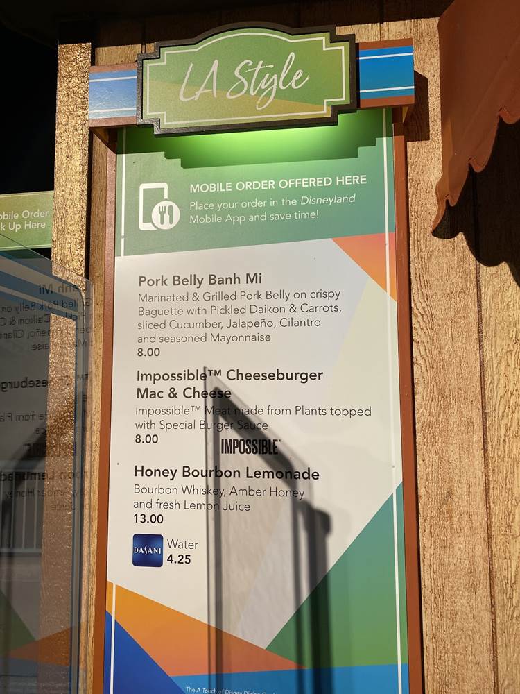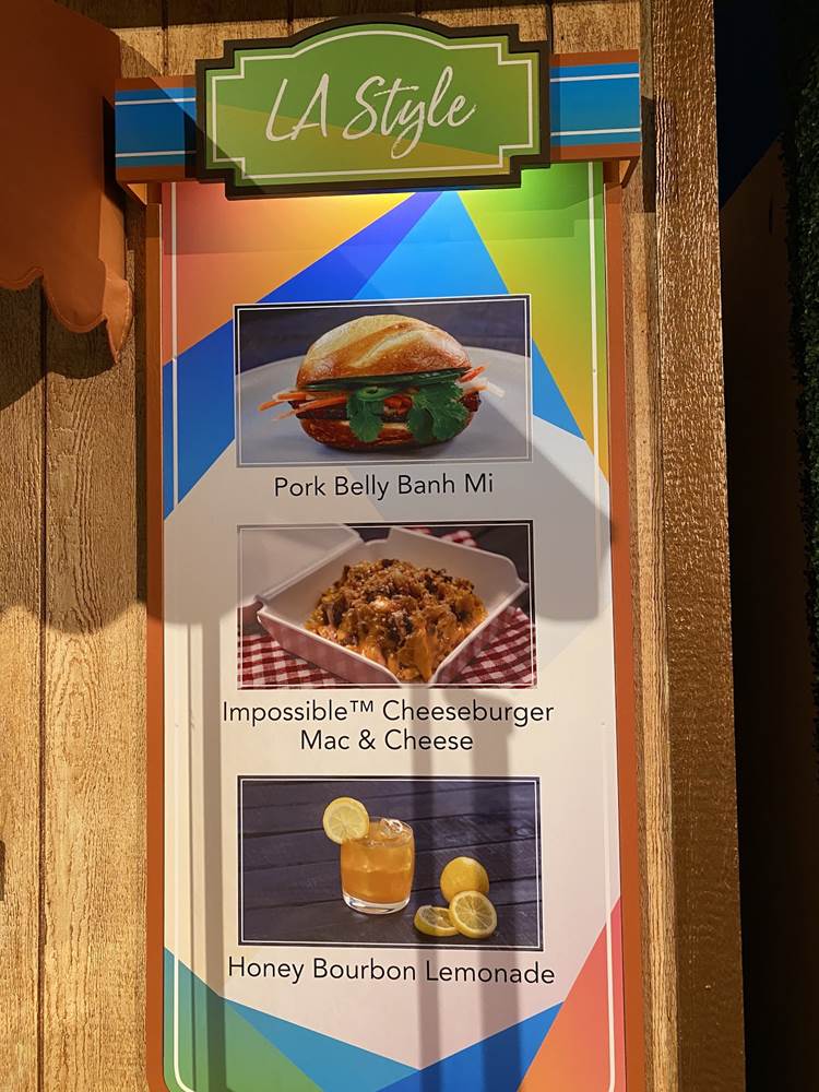 LA Style features a Pork Belly Banh Mi, as well as serves up an Impossible Cheeseburger Mac & Cheese, and offers a Honey Bourbon Lemonade.