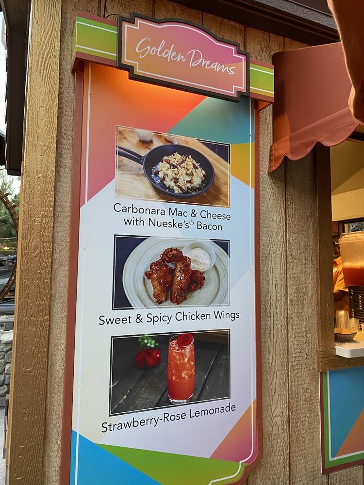 Located near the Mill that makes up the lift hill of Grizzly River Run, Golden Dreams offers Carbonara Mac & Cheese with Nueske’s Bacon, Sweet and Spicy Chicken Wings, and Strawberry-Rose Lemonade.