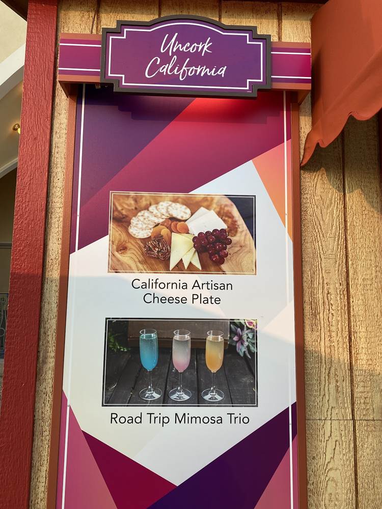 Uncork California offers up a California Artisan Cheese Plate, along with assorted wines, mimosas, and a mimosa flight.