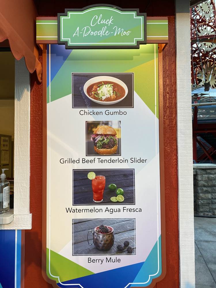 Cluck-A-Doodle-Moo features Chicken Gumbo, a grilled beef tenderloin slider, and also serves up Watermelon Agua Fresca, and a Berry Mule.