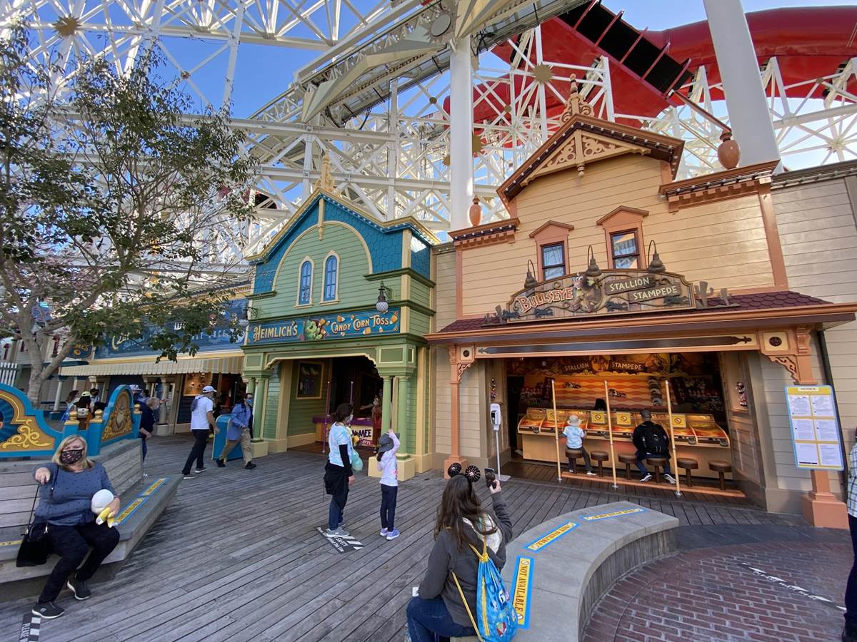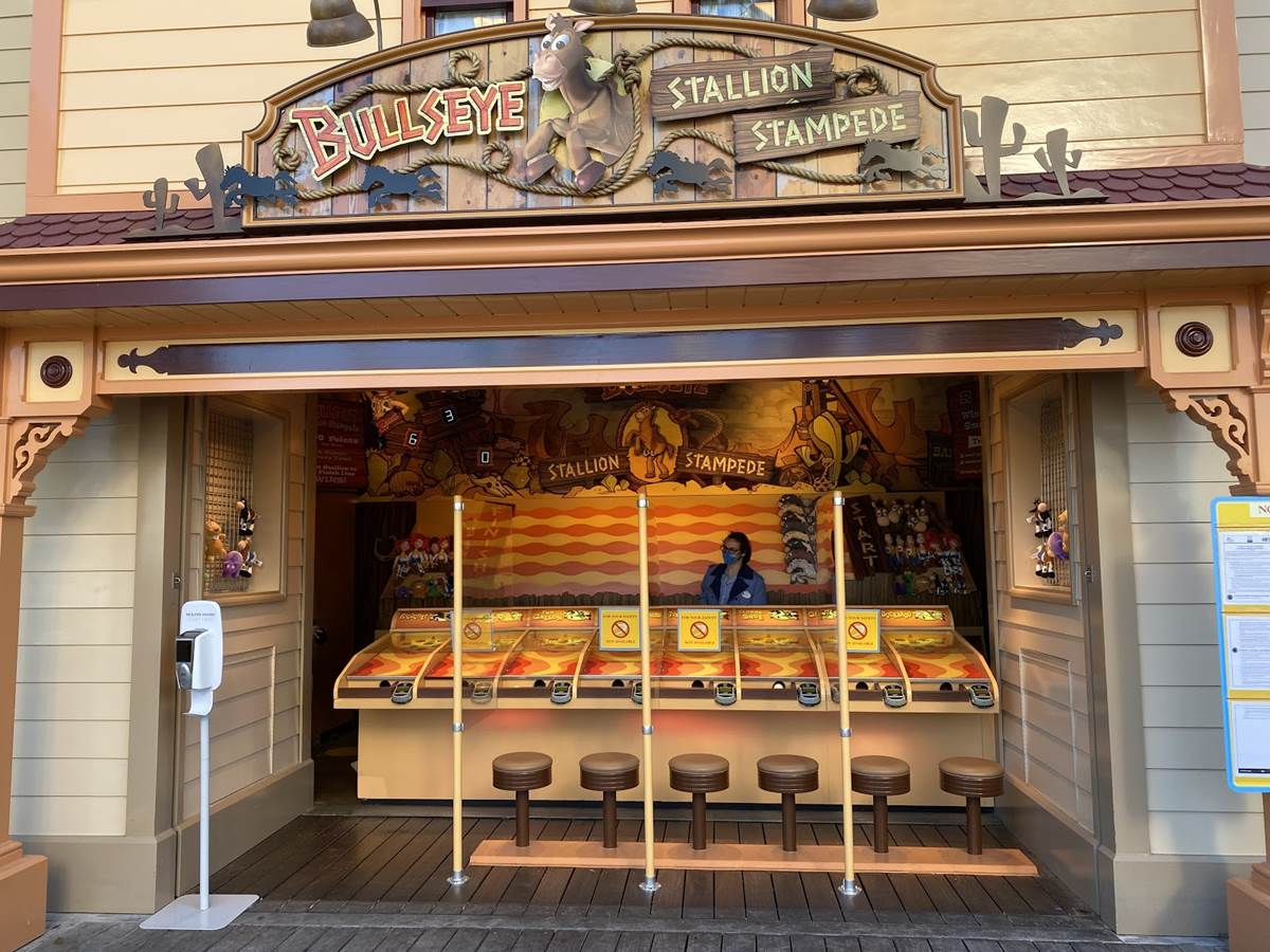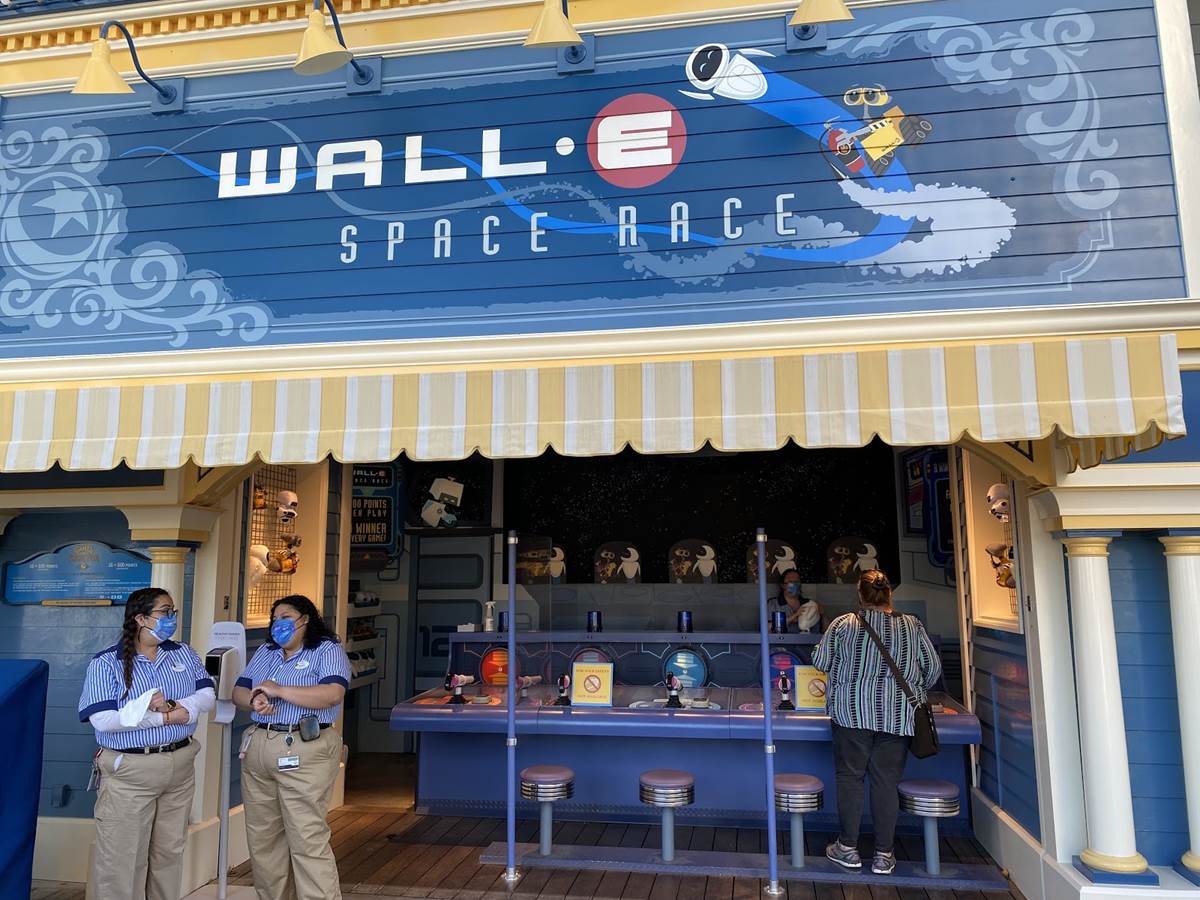 - There are four games on Pixar Pier, but when we saw them open, only three (Bullseye Stallion Stampede, Heimlich’s Candy Corn Toss, and Wall-E Space Race) were operating. The La Luna Star Catcher was behind a curtain and not operating. We are unclear as to why, considering the precautions taken on the other games could also be applied to this one, where guests hold a magnetic fishing road over stars floating in a trough to pick one that determines their prize.
