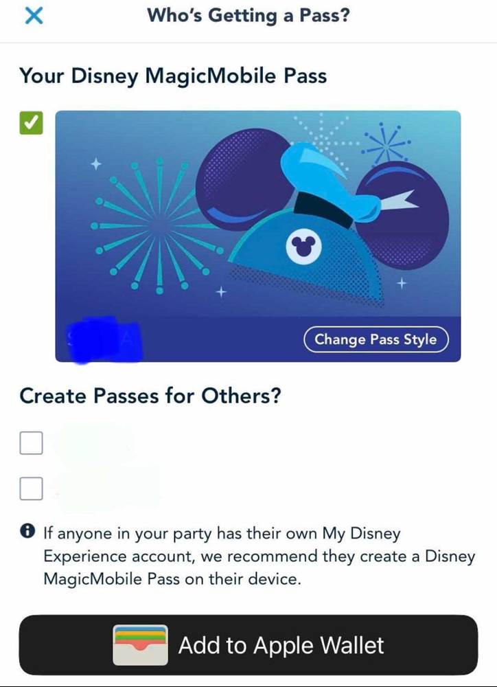 When creating your Disney MagicMobile Pass, you not only select which member of your party it’s for, but also have some flexibility to customize the image on the digital card.