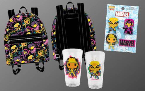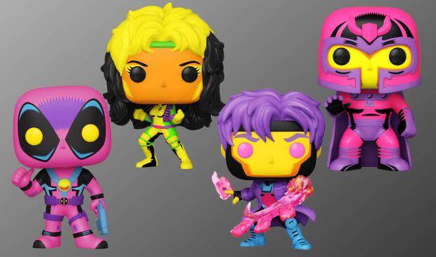 - The blacklight Funko Pop! figures include Rogue, Deadpool, Gambit, and Magneto.