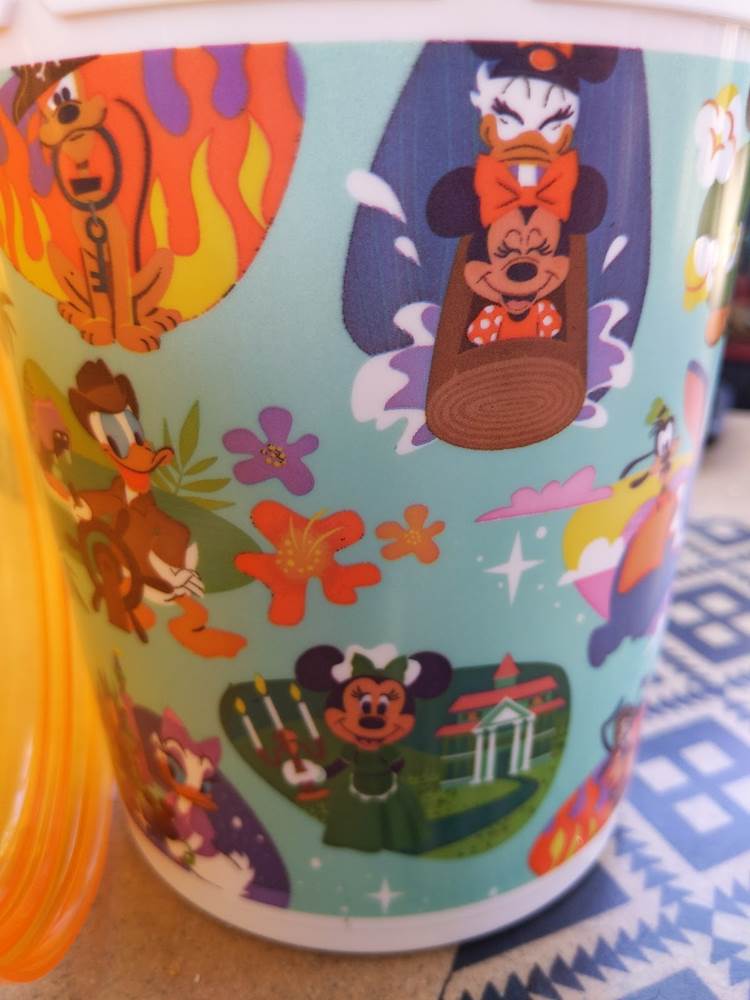 - The bucket features favorite Disney characters surrounded by iconography relative to various Disney Parks. For example, you can see Minnie Mouse and Daisy Duck careening downhill and making a splash, a la Splash Mountain, as well as Minnie Mouse dressed as a maid from the legendary Haunted Mansion.