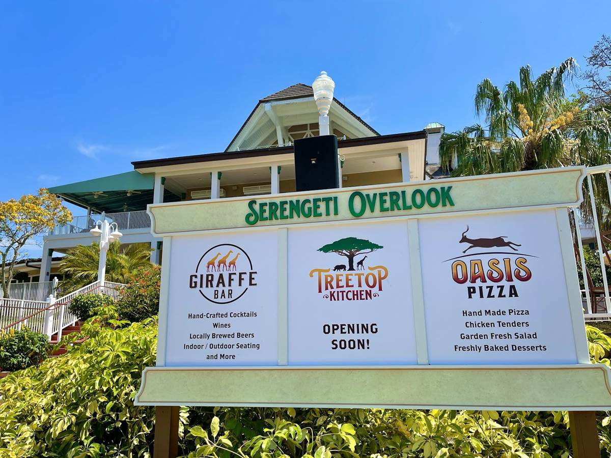 - The sign as the Serengeti Overlook has now been updated to include the Giraffe Bar with the Treetop kitchen opening soon.