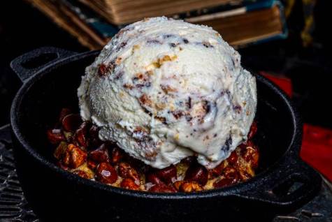 - Guests can get a scoop of this new ice cream on top of a cookie of their choosing, though it obviously pairs best with the new April cookie, which consists of vanilla bean cookie dough fused with orange and mixed with Gideon’s dark chocolates and pecan pralines.