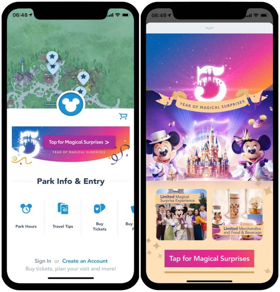 - Guests can enter drawings for special prizes using the Shanghai Disney Resort App with a new “Tap for a Magical Surprise” button after entering the park. Prizes include digital autographs from Disney characters, vouchers for dining and merchandise, priority access to attractions, and reserved viewing areas for entertainment.