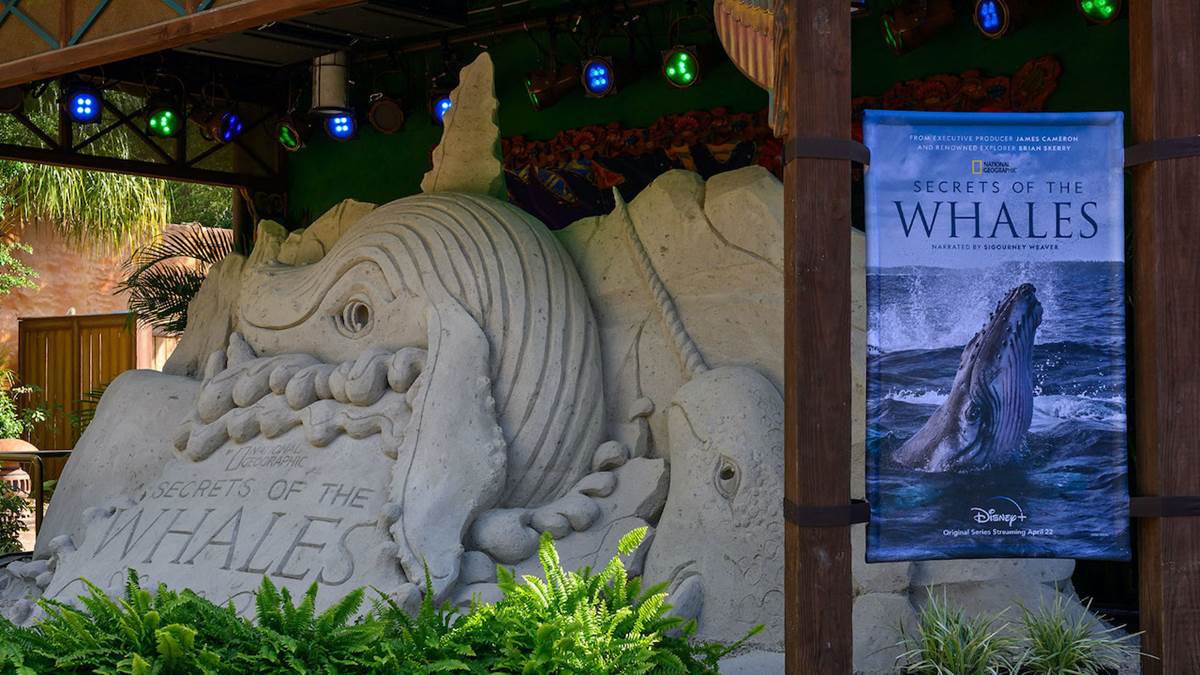 - In celebration of the April 22 release of the Disney+ Original Series Secrets of the Whales from National Geographic, artists recently carved a new sculpture out of 40 tons of sand at Disney’s Animal Kingdom Theme Park. The intricate sculpture took two artists over 16 hours to complete and features a sperm whale, humpback whale and narwhal inspired by footage from the series.