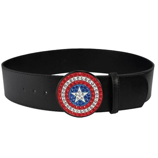 Pre-Order Only Captain America Shield Enamel Cast Buckle - Black PU St - Buckle-Down