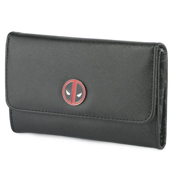 Women's Fold Over Wallet Rectangle Saffiano PU - Deadpool Logo Metal E - Buckle-Down