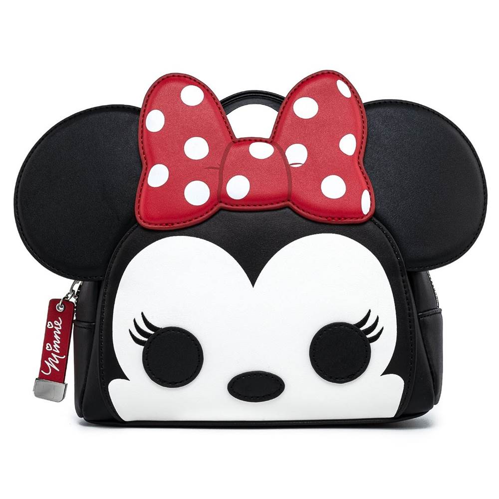 - Fans of Disney, Funko Pop!, and Loungefly will be delighted to see this Funko Pop! by Loungefly Mickey & Minnie Mouse Cosplay Mini Backpack. Minnie is wearing a red and white polka dot bow to match the black, red, and white color scheme. This mini backpack has sturdy metal hardware, and is the perfect accessory for Disney fans who want to take Mickey and Minnie Mouse with them wherever they go.