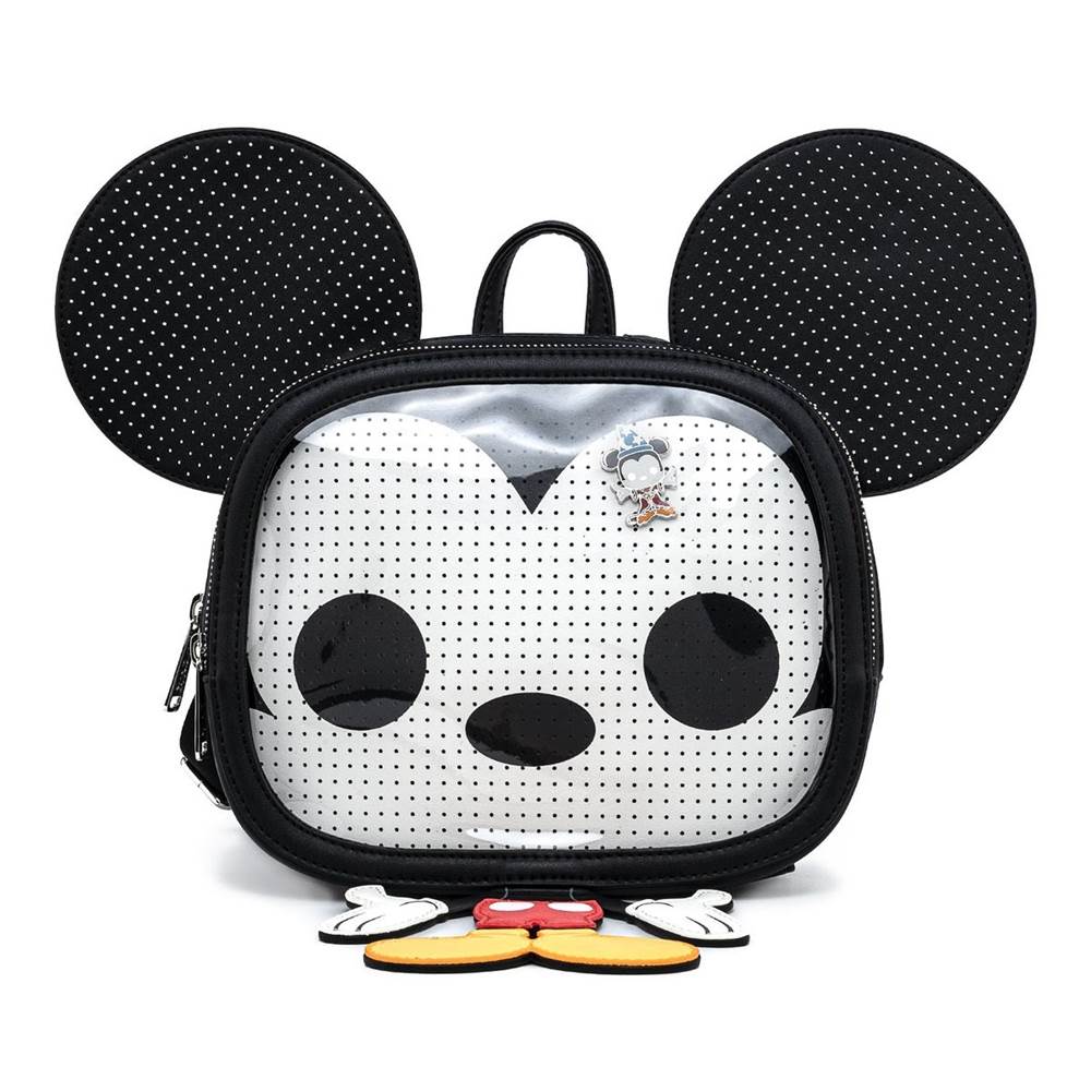 - Fans of Disney, Funko Pop!, and Loungefly will be delighted to see this Funko Pop! by Loungefly Mickey Mouse Pin Trader Coplay Mini Backpack. Mickey is wearing his classic red and yellow outfit and you can display your enamel pins on the backpack. This backpack consolidates your necessities without sacrificing personal style and is the perfect accessory for Mickey Mouse fans.