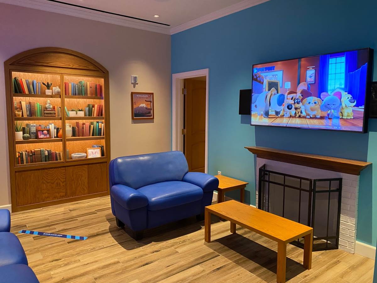 You’ll enter a room with the first of many animatronics in this queue line, this one featuring Buddy getting a massage in the kitchen.
