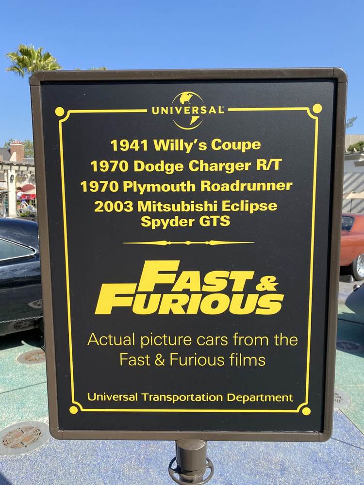 Further inside Universal Plaza, we find a collection of automobiles as seen in the various films of the Fast and the Furious franchise.