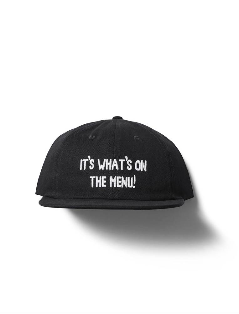 While not nearly as exciting as Bob’s Burgers’ burger of the day, you can still top off your look with this goes-with-everything baseball cap that asks the ultimate question: “What’s on the menu?”