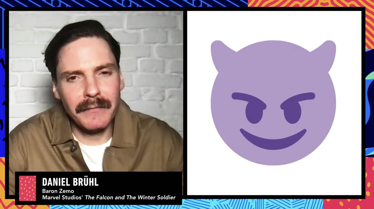 - Next up, the cast of The Falcon and The Winter Soldier — Wyatt Russell, Daniel Bruhl, and Erin Kellyman shared which emoji describes their character best in the series.