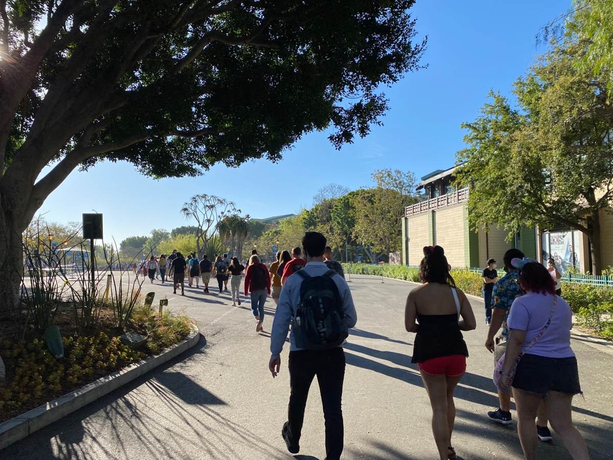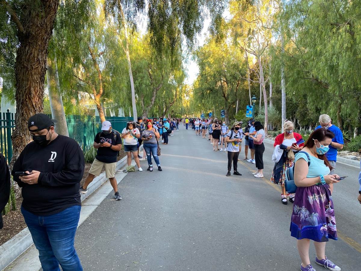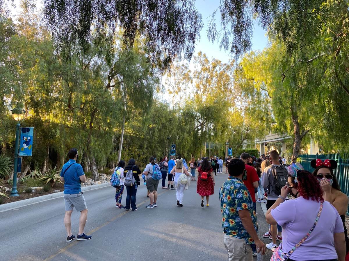 After a security check, we were able to start heading toward the park walking through the tram route which is being used as queue space as Guests lined up for entry.