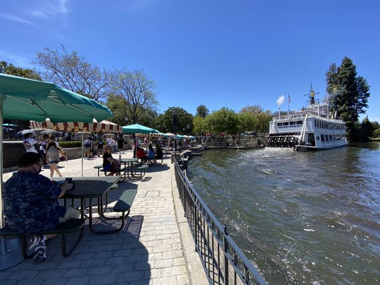 Outdoor seating has been placed along the Rivers of America, giving Guests an incredible view, with some space to eat and relax while staying physically distant.
