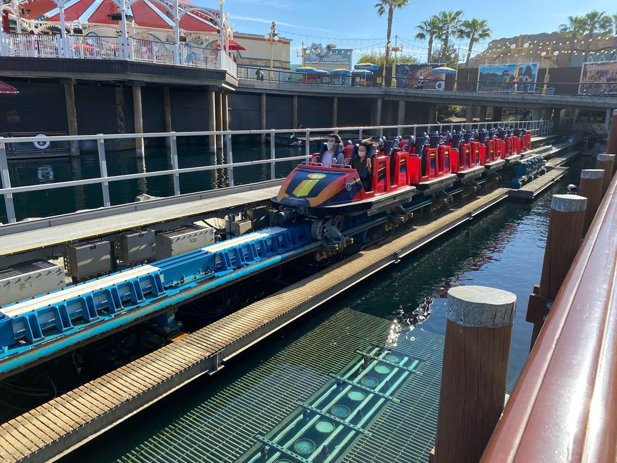 The first stop was Pixar Pier, where the Incredicoaster was offering an early-morning thrill to park guests.