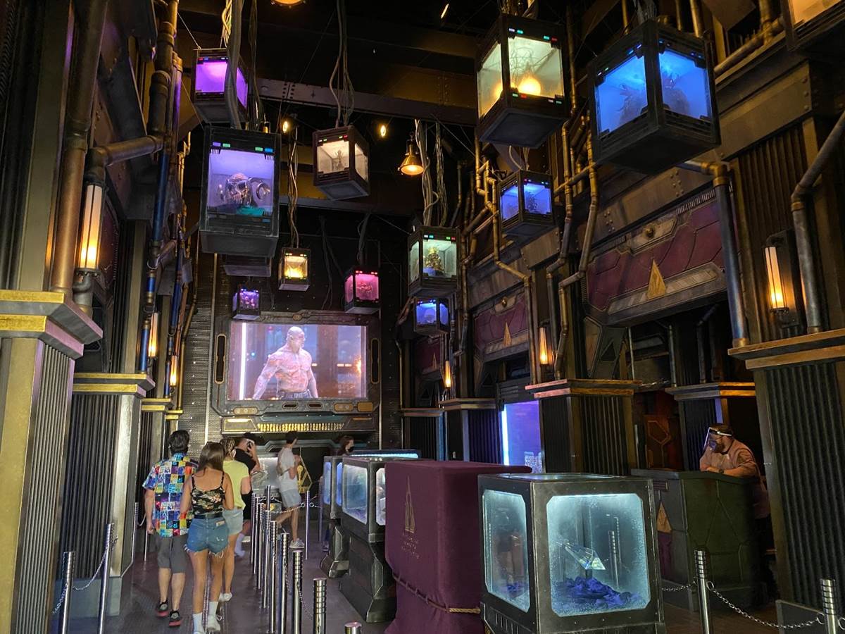 - As for the attraction itself, guests are of course being socially distanced through the queue and, to avoid crowds, the Rocket Raccoon pre-show is being skipped entirely.