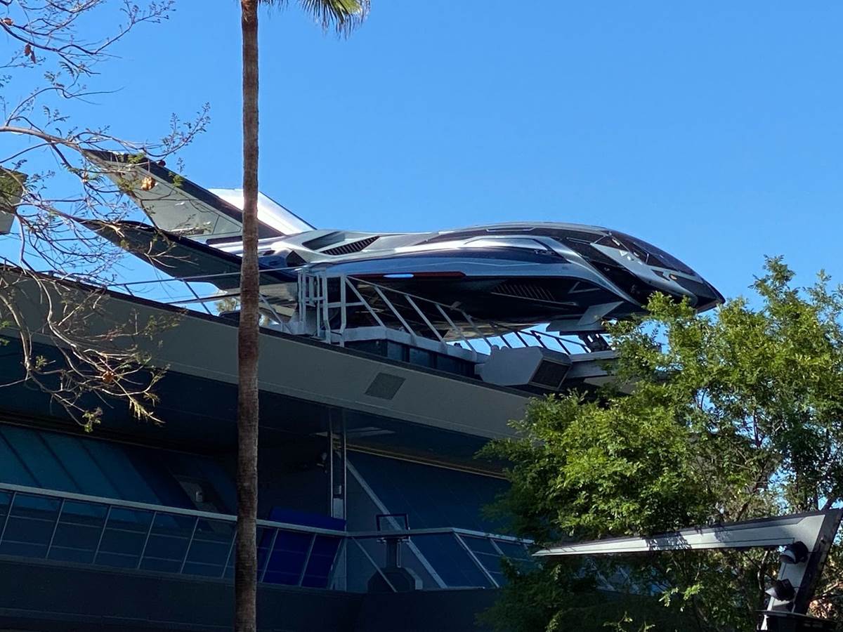 - From the Cars Land side, we were able to get a pretty good glimpse into Avengers Campus, or at least the quinjet perched over the top of the new land.