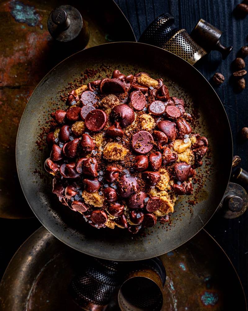 - The cookie features peanut butter mixed in with espresso bean, topped with chocolates and candied peanuts.