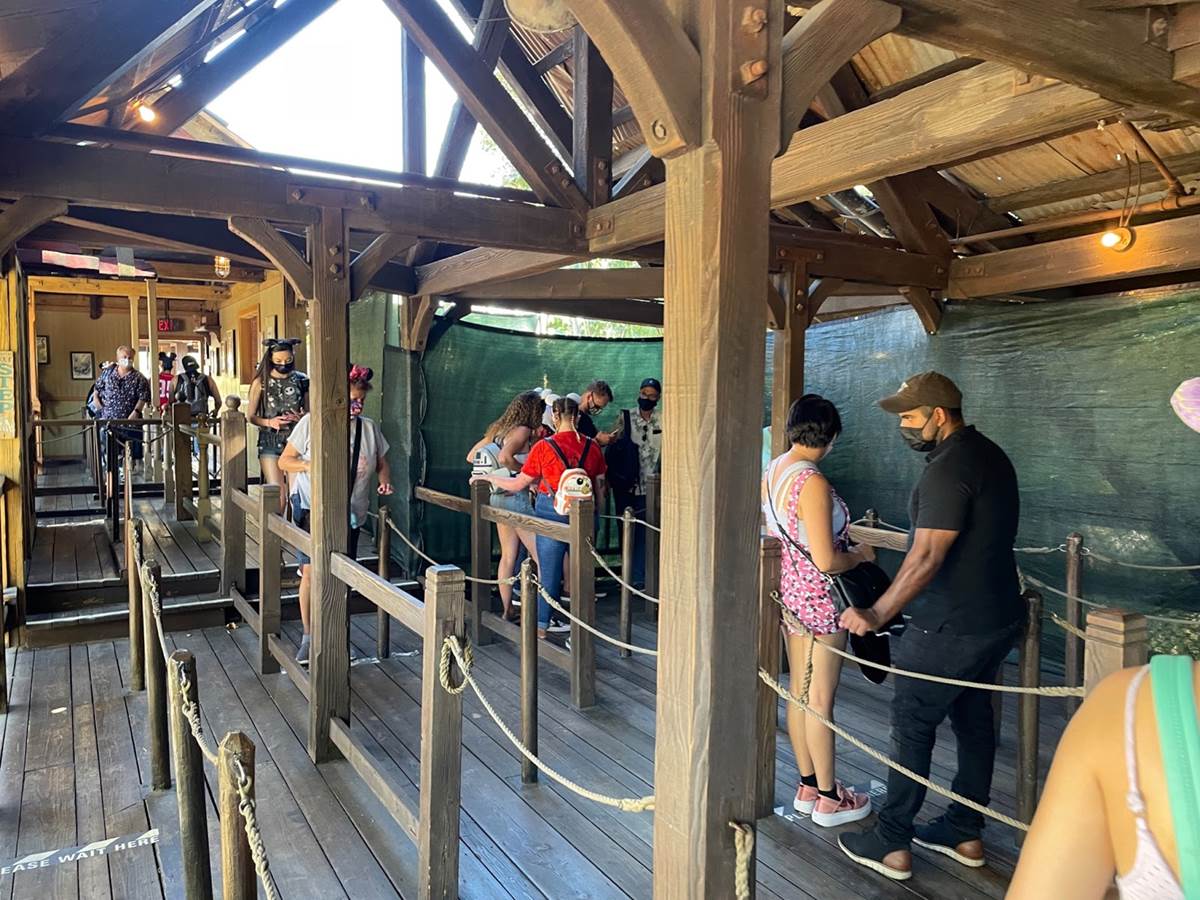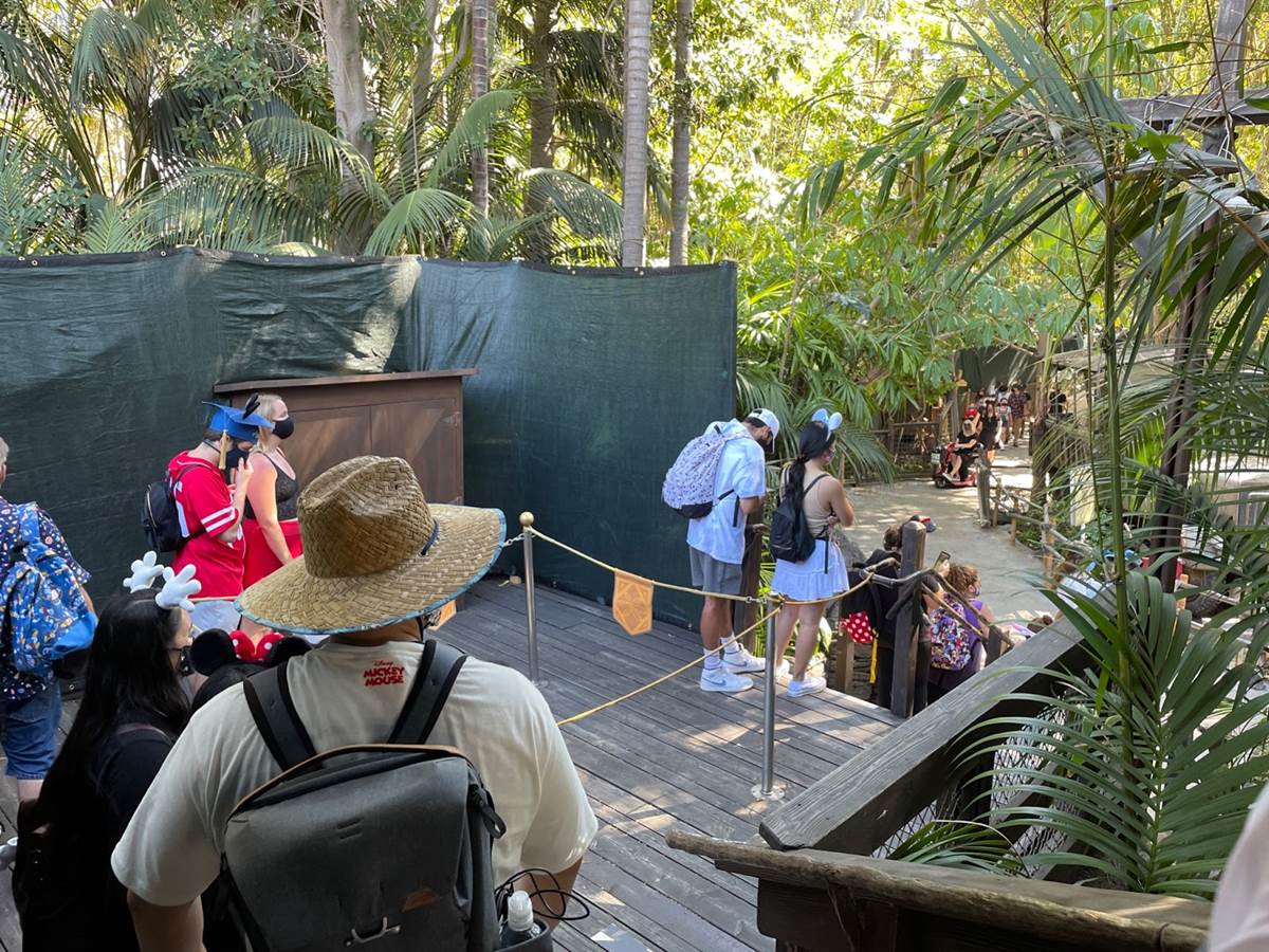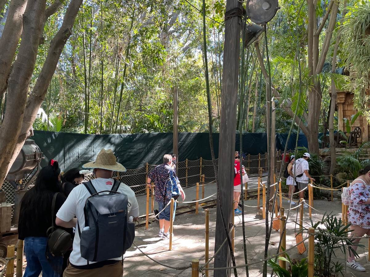 While enjoying the reopening of Disneyland the other day, we noticed that the Jungle Cruise was being used as additional queue space for Indiana Jones Adventure, helping with physical distancing requirements and the ability to have Guests queue outdoors.