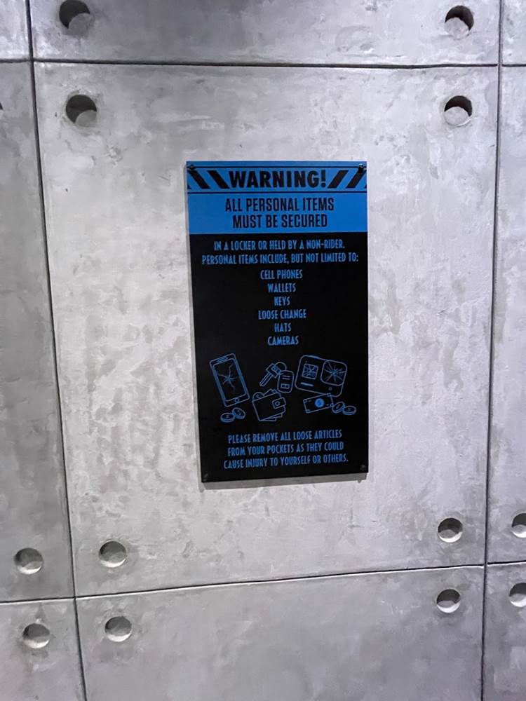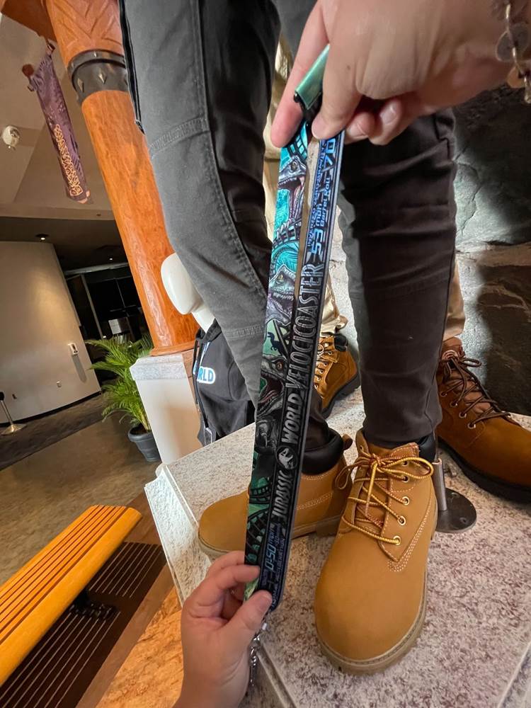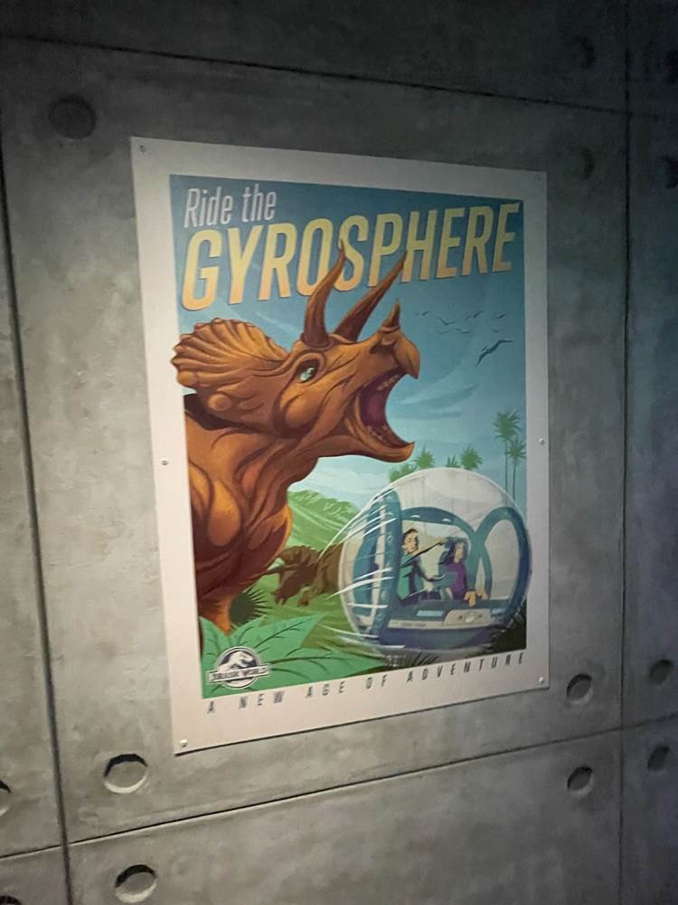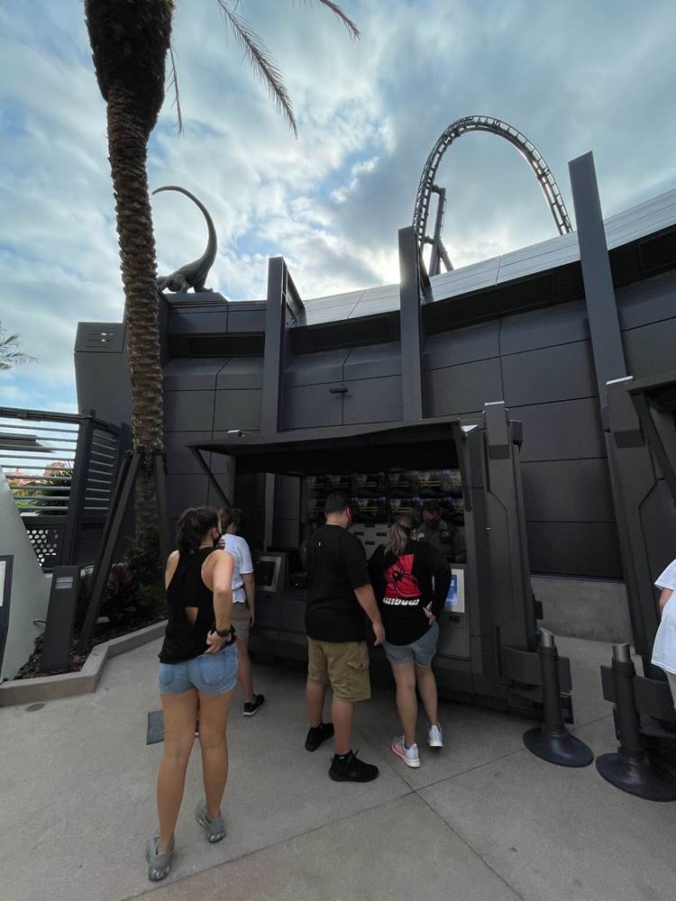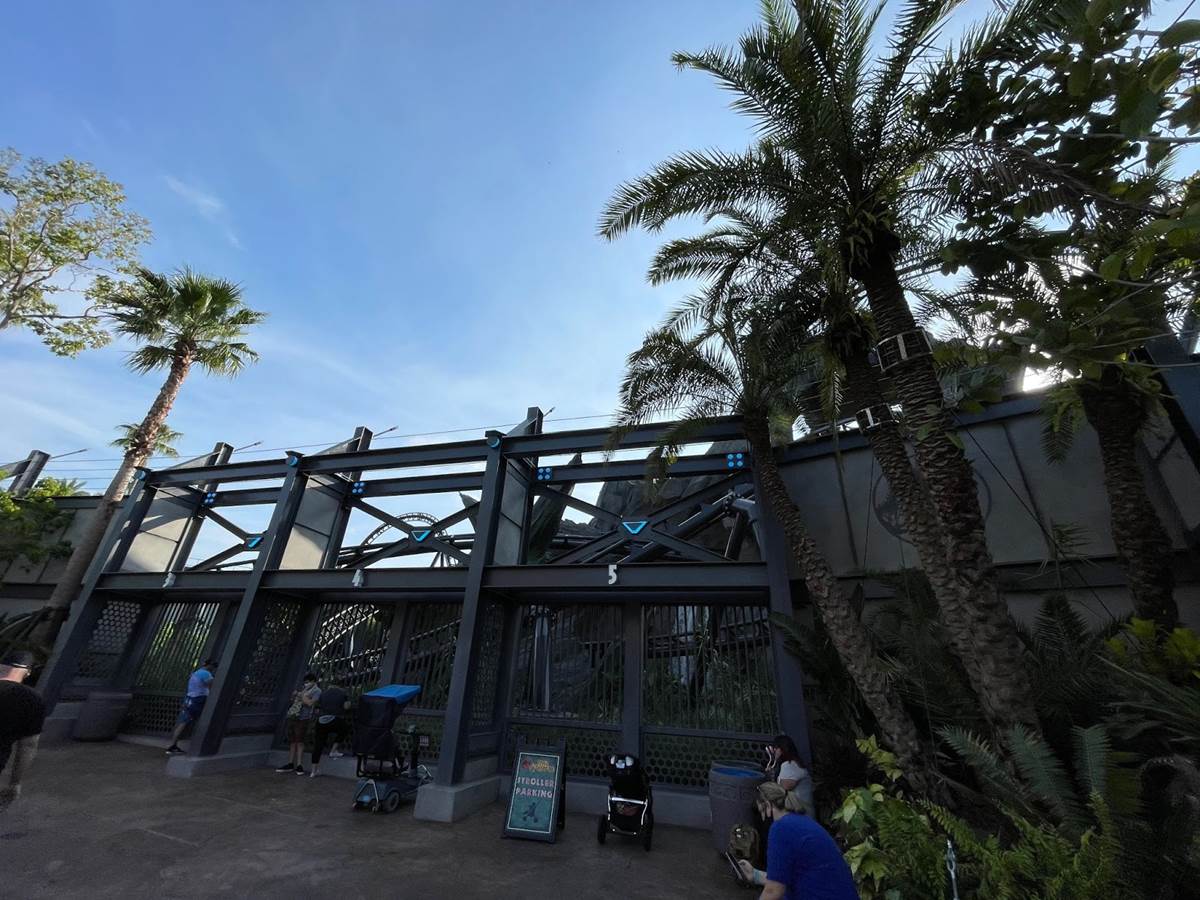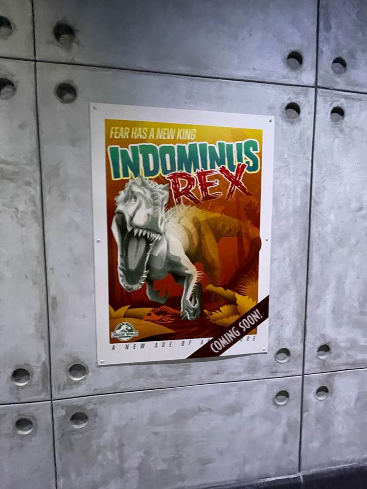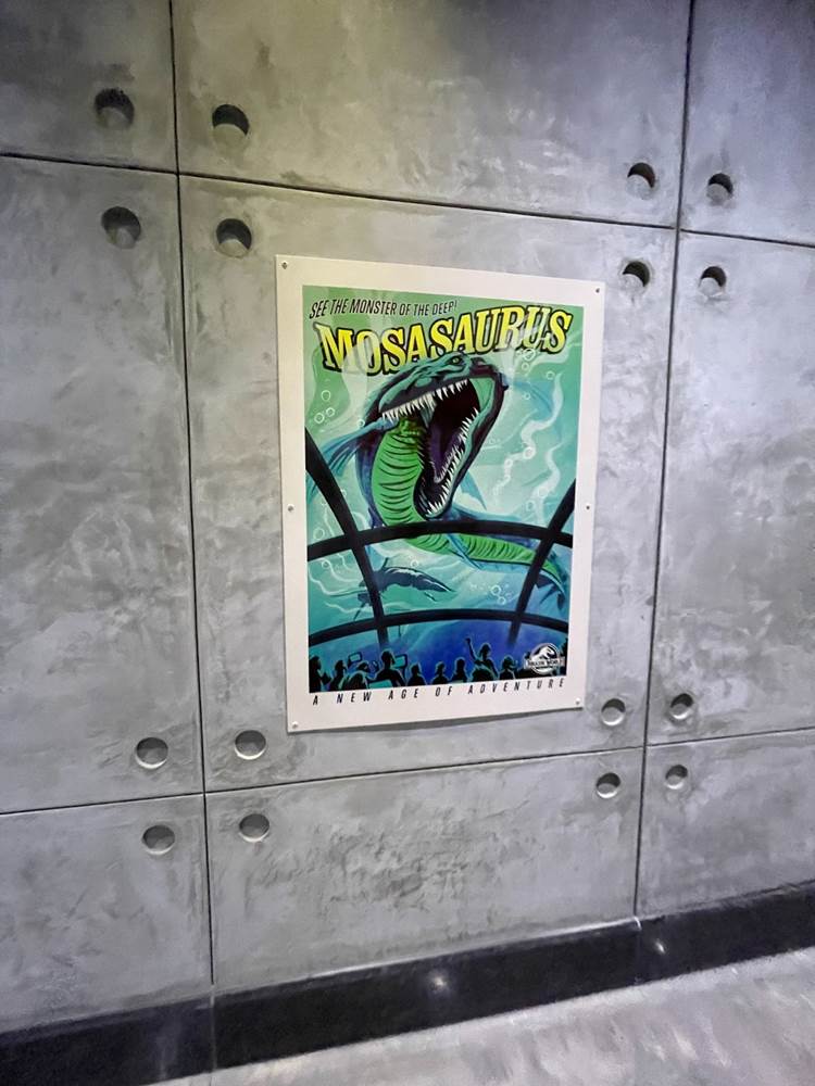 Similar to other coasters at the park, loose items and carry on bags and such are not allowed, and must be stowed in a complimentary locker. The lockers are themed to different dinosaurs to help remember your location, and fans will likely delight over the posters marketing other attractions of Jurassic Park/World, two of which are marked as “coming soon.” Could this be a hint towards a retheme of Camp Jurassic into Camp Cretaceous and/or a refurbishment of the River Adventure to be more like Jurassic World: The Ride at Universal Studios Hollywood? Also, as most coasters in the park feature a test seat, so does Jurassic World Velocicoaster.