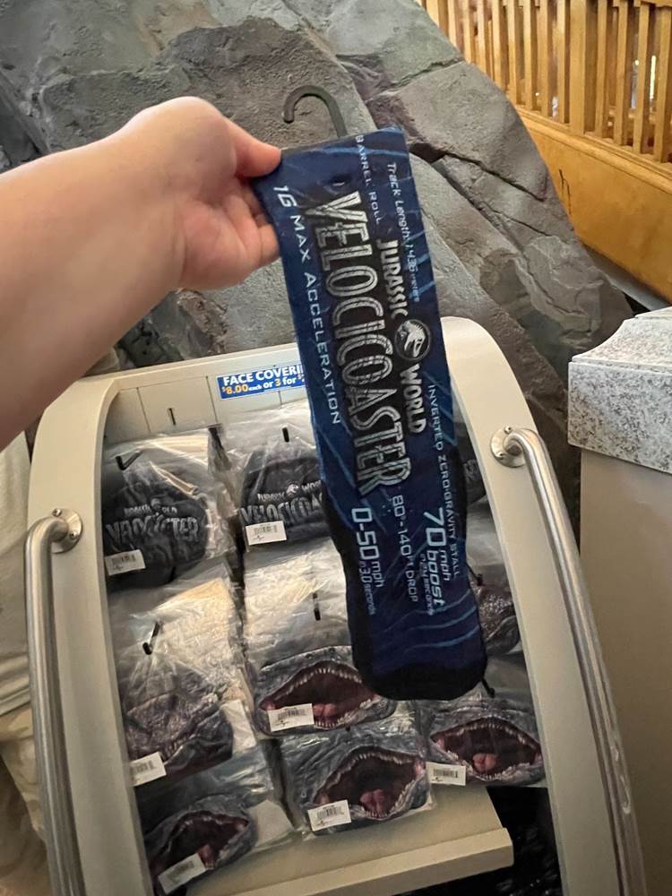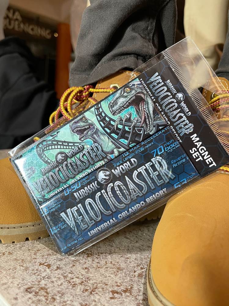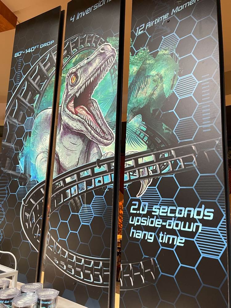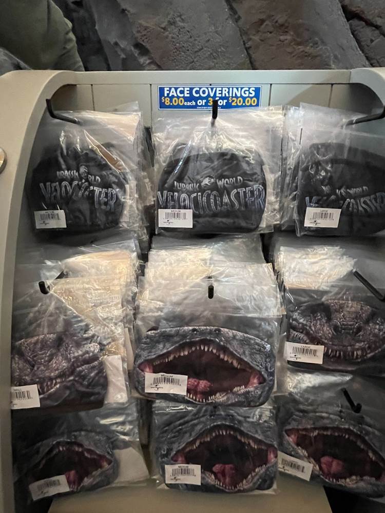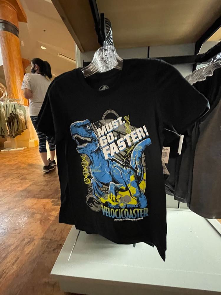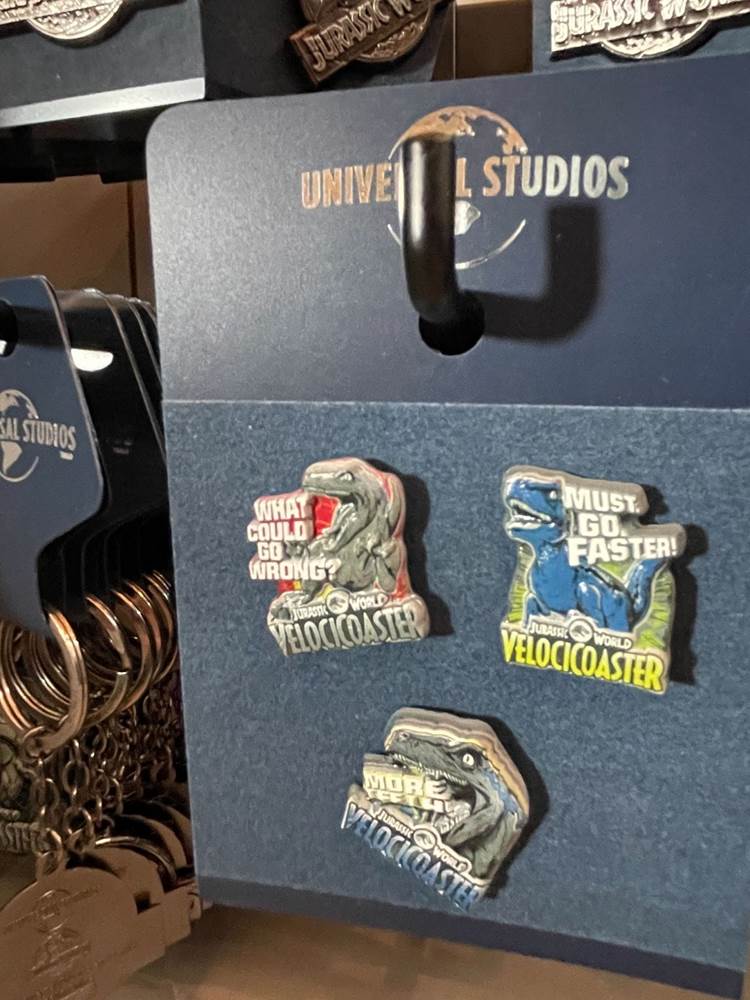 Fans of the Jurassic Park Discovery Center (an interactive area which was home to regular shows wherein guests could have the once in a lifetime opportunity to witness a live dinosaur hatch) might be a bit startled to see that the area modeled after the Visitor’s Center in the original Jurassic Park, has been transformed into the Velocicoaster Store, featuring pins, apparel, lanyards, cups, and more.