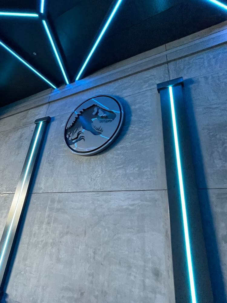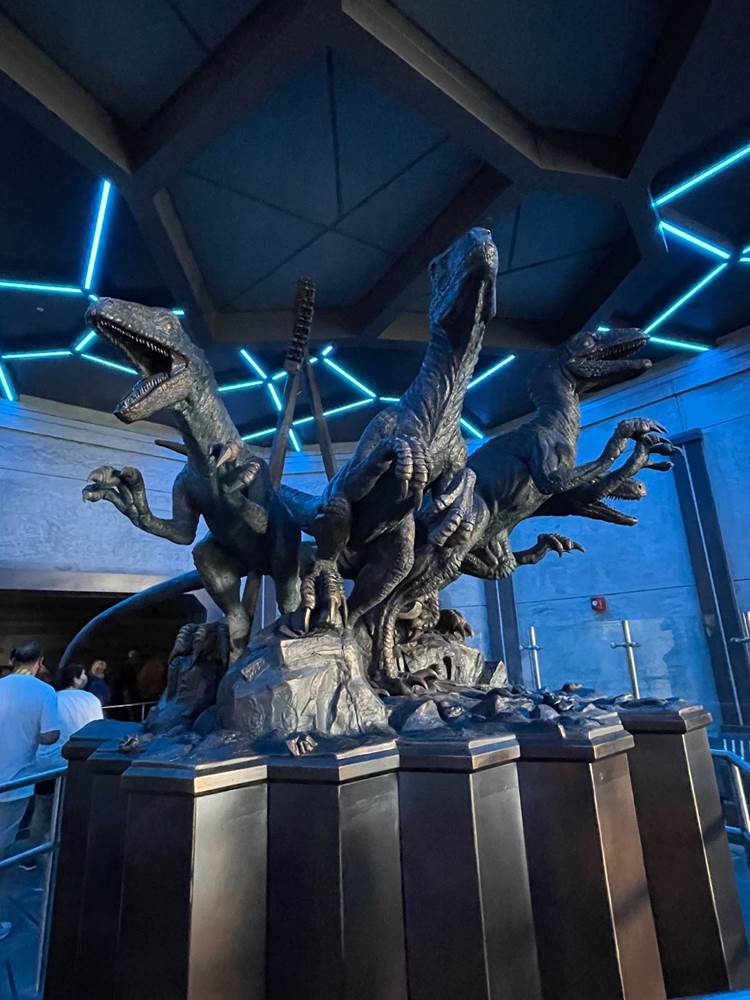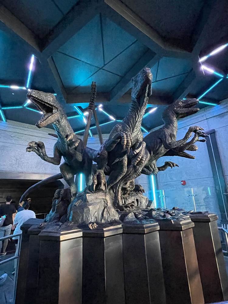 One popular spot for photos has already proven to be a statue after the entrance featuring four velociraptors in a room with brilliant light patterns as well as video screens showing off Velociraptor footage and the legendary Mr. DNA.